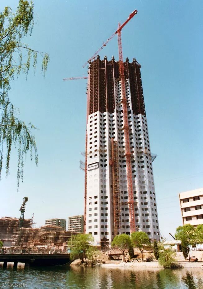 该大厦在北京朝阳区亮马河畔,地面层高184米,总高201米,共56层(其中地下4层),总面积13.4897万平方米,钢结构重约18100吨。经过2年精心施工,1988年12月28日工程竣工。