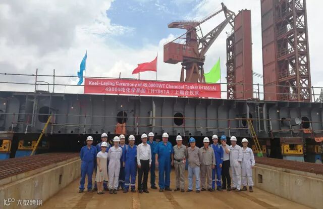 7月2日,在2号船台区域举行2号船上船台仪式。49000吨化学品船监造组船东代表、DNV-GL船级社代表和公司化学品船项目组组长出席仪式。
