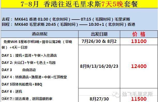 导读:【青旅行】 {香港}⇌毛里求斯7天5晚豪华游!