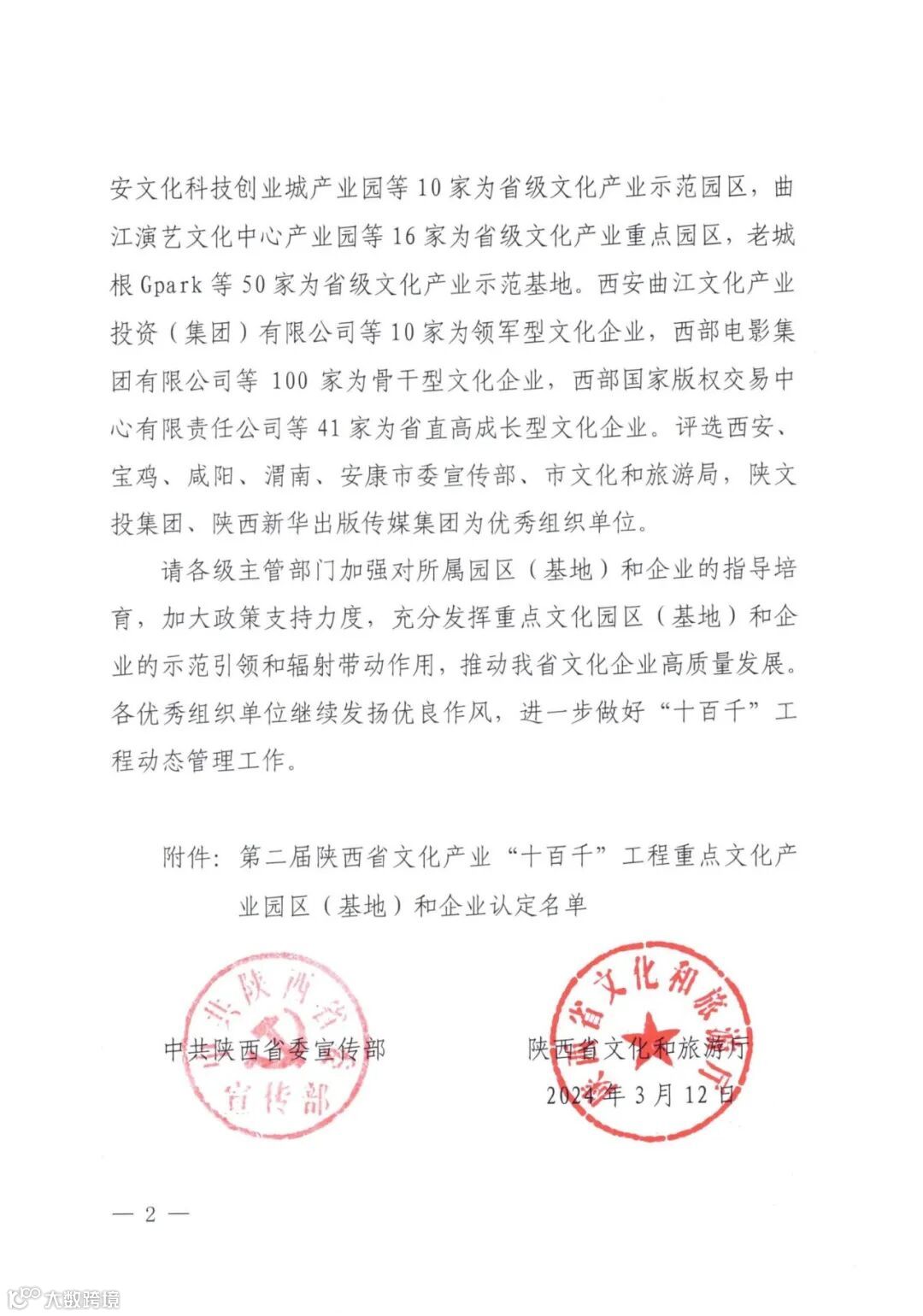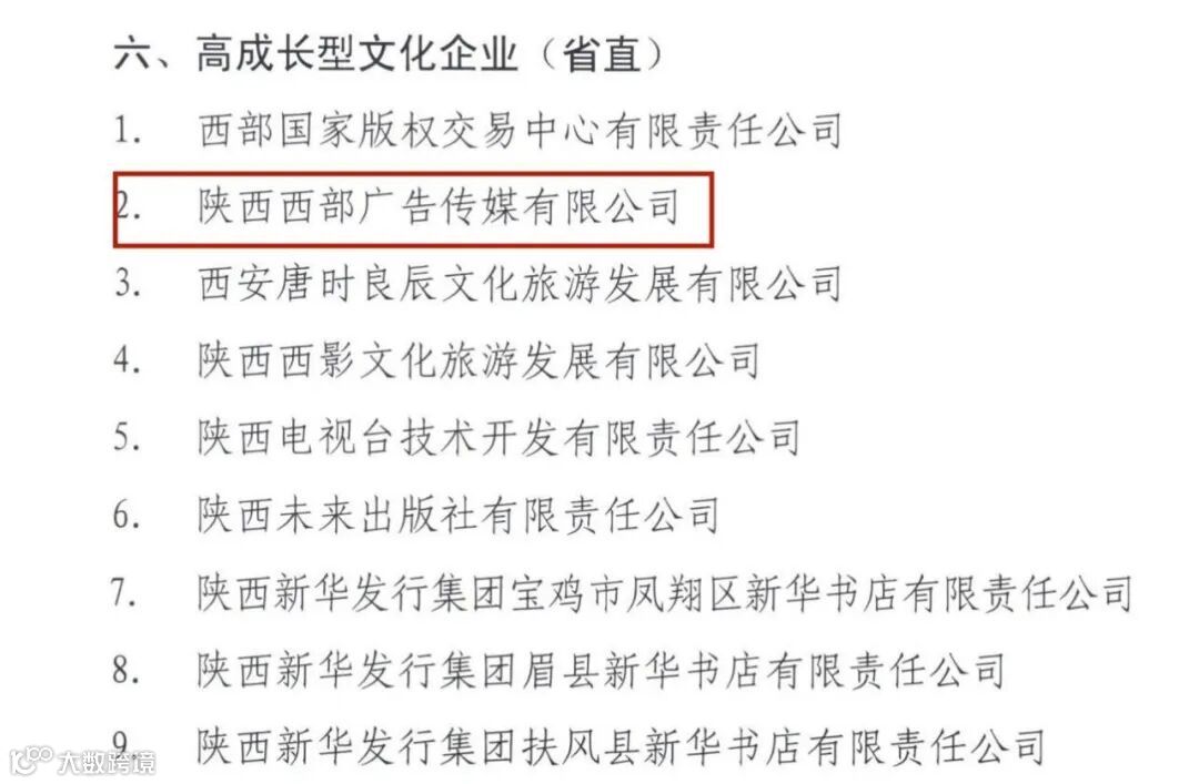 近日,由省委宣传部与省文化和旅游厅联合开展的第二届陕西省文化产业“十百千”工程重点文化产业园区(基地)和企业认定名单揭晓,西部传媒入选“高成长型文化企业”。