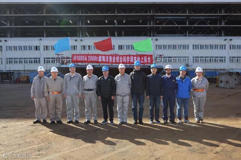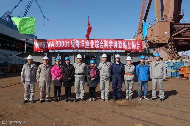 12月8日上午,2艘3000吨级海洋渔业综合科学调查船,在浦东船坞西侧总组平台举行上船台仪式。