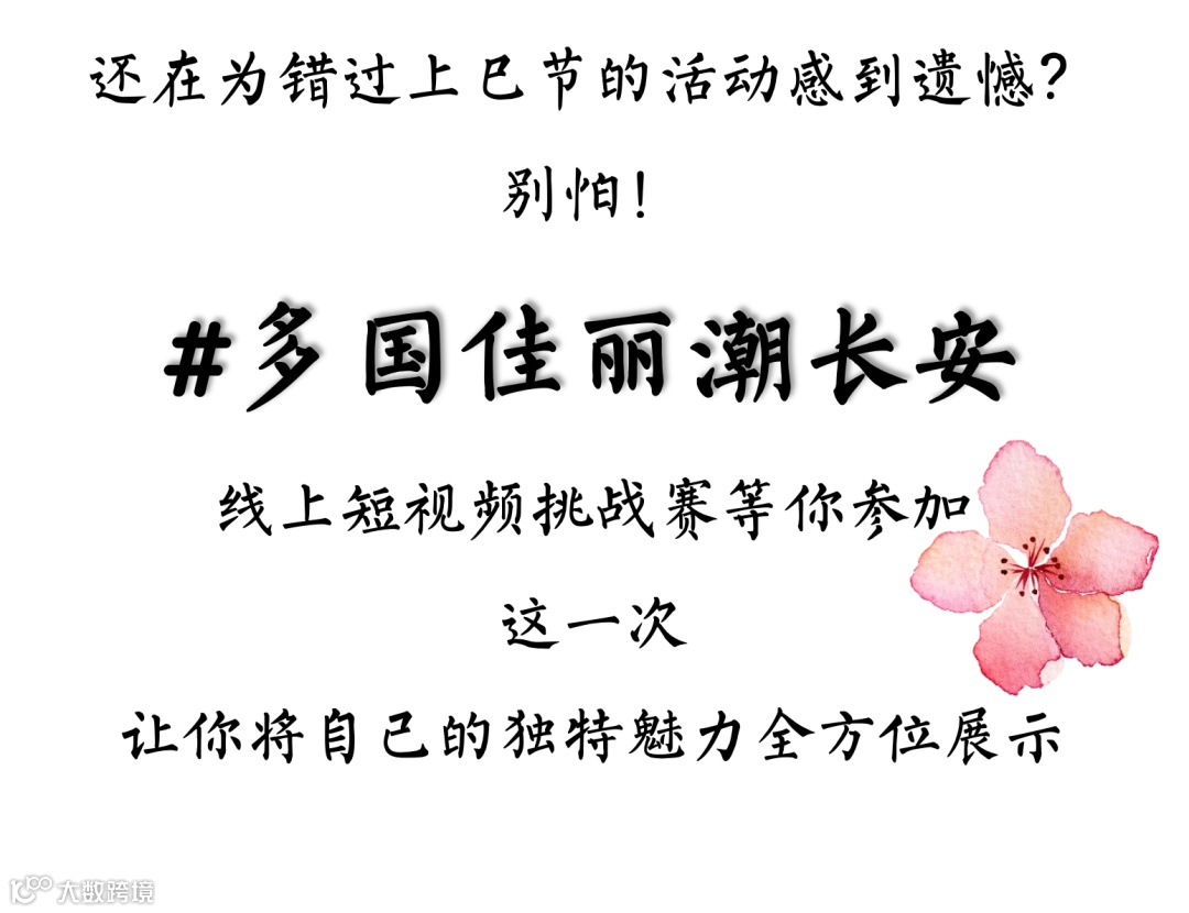 4月22日-4月27日,「多国佳丽·潮长安」线上短视频挑战赛火热进行中!不仅有世界小姐中国区冠军杜暘、余薇薇领衔发布抖音短视频,更有环球小姐全球亚军/巴西里约奥运会形象大使Julia Gama、墨西哥世界小姐Daniela等进行全球新媒体联动,将盛唐女儿节通过Instagram、Tiktok带向世界。