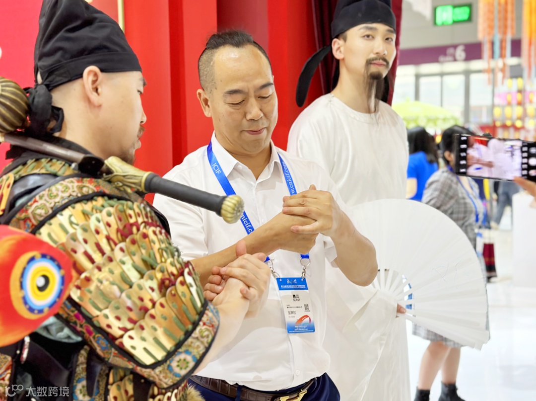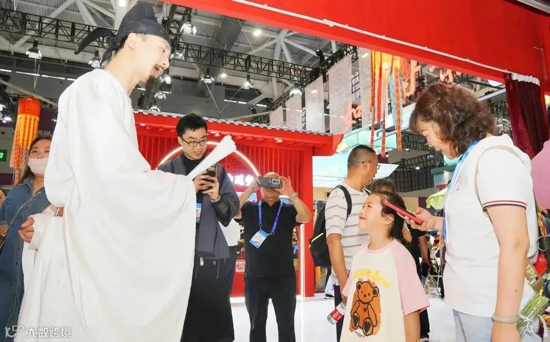 “这位姑娘,可否与在下对诗一首?”NPC李白折扇一展,向游客盛情邀约;“在下长安崔器,初来乍到此地,敢问兄台能否行个方便?”NPC崔器双锤搭肩,向游客拱手作揖。会展现场,NPC演员们不仅引来阵阵游客拍照合影,更与游客亲密互动,一问一答、一言一行不仅幽默风趣,更充满代入感,让游客宛如真实置身于熙熙攘攘的唐长安街,沉浸解锁穿越盛唐的通关密码。