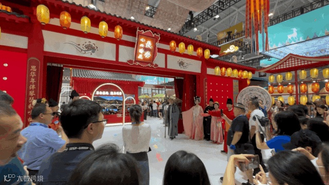 一门入大唐来,开市迎四方客。文武列队,鼓声阵阵,宣礼官朗声宣赞,随着一声宣告“开市”的鸣锣,陕西馆刚一开馆,由长安十二时辰主题街区带来的“开市”仪式就吸引了众多游客与展商的目光。飘逸洒脱的“李白”,温厚内敛的“玄奘”,雍容华贵的“花魁”,各具特色的唐朝NPC一亮相,就成为游客和各路记者聚焦点。大家与NPC演员拍照打卡,频频互动,甚是喜欢。本次文博会,陕西馆以“长安十二时辰”唐风市井为设计蓝本,打造沉浸式体验,让游客从这里“一步入唐”,沉浸感受唐“潮”人的烟火气。“陕西的展馆特别有氛围,体验感特别好!”来自广州的展商李先生夸赞道。“小姐姐的汉服特别好看,有一种回到唐朝的感觉,我也要去西安感受这份文化魅力”,来自杭州的吴女士说。