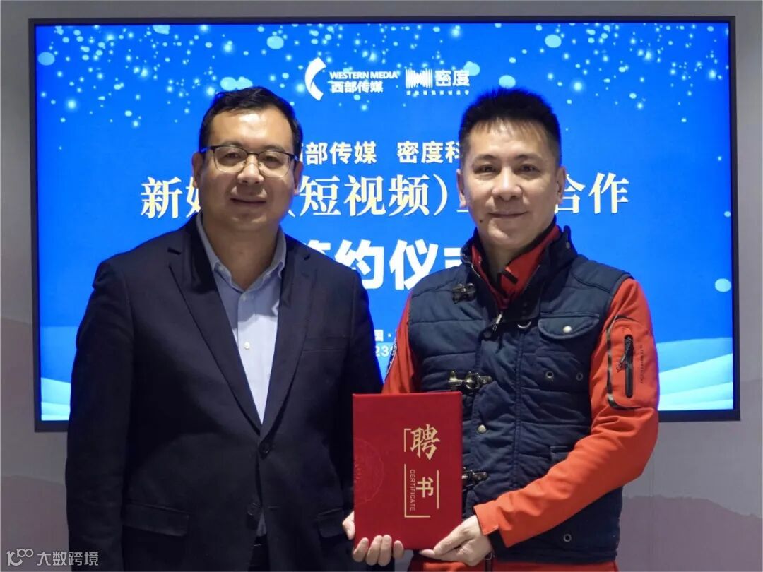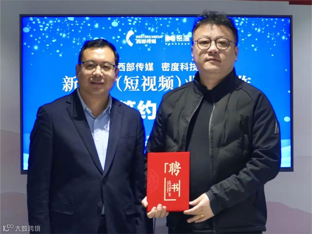 西部传媒董事长李保林、密度科技创始人曾光明代表双方签约。曾光明受聘为西部传媒首席高级顾问、短视频事业部荣誉商务专员,密度科技CEO冯科受聘为西部传媒短视频事业部总经理。