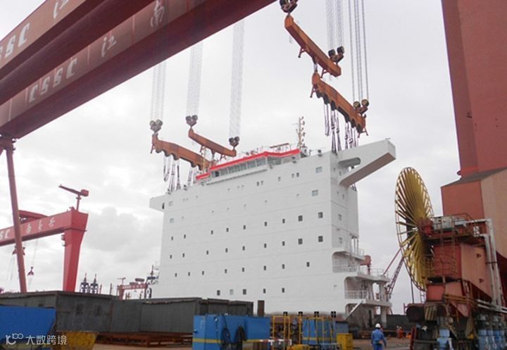 当下进行的是B甲板以上家具施工、总线电缆敷设等,以确保上建出坞完整性再向前一大步。