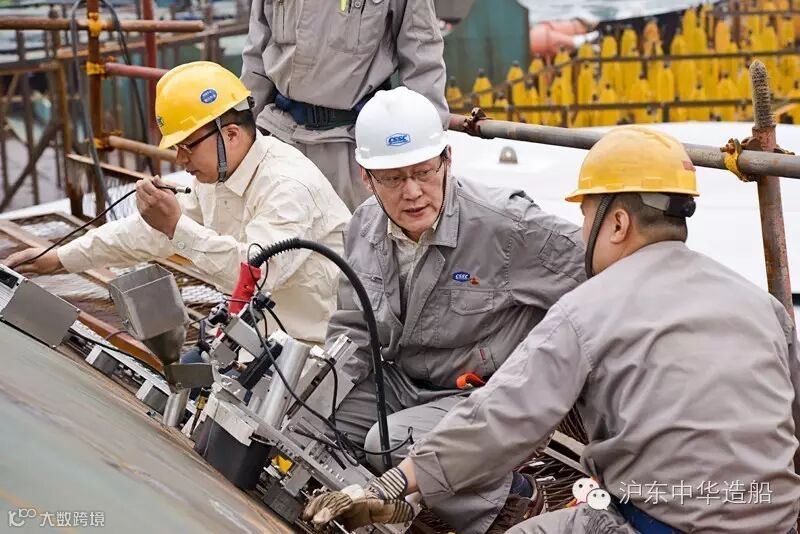 2年前,劳模研究室成功研发了“横向埋弧自动焊工艺”,完成了工艺评定,获得中国船级社(CCS)和挪威船级社(DNV)验证认可。挪威船级社给予极高评价:在船舶制造领域,沪东中华的焊接研究站在中国的最高层次,闯出了一条焊接新路,将为振兴中国造船工业做出贡献。