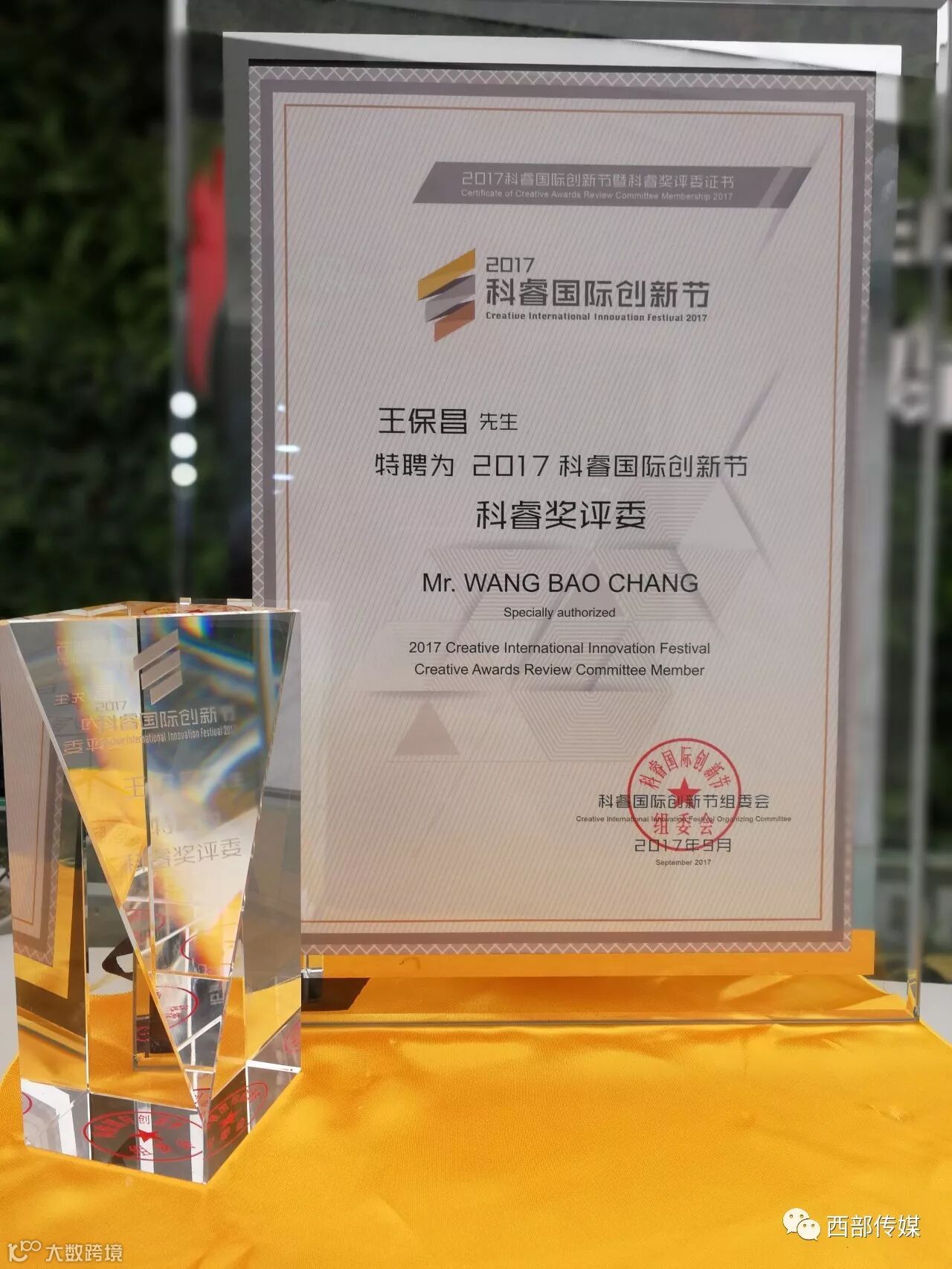 “科睿奖”评审团来自国内外品牌广告主、代理商、媒体、调研机构及学术单位中广告营销传播界的资深专家人士,学术界评委、企业界评委、媒体界评委汇聚一堂,层层筛选、审核,最终评选出优秀的获奖作品。西部传媒董事长王保昌特聘为2017科睿国际创新节科睿奖评委。