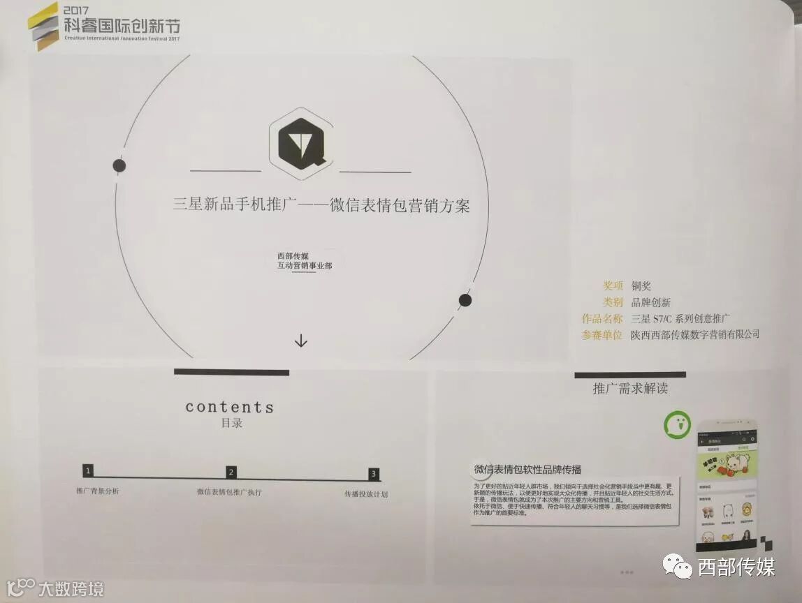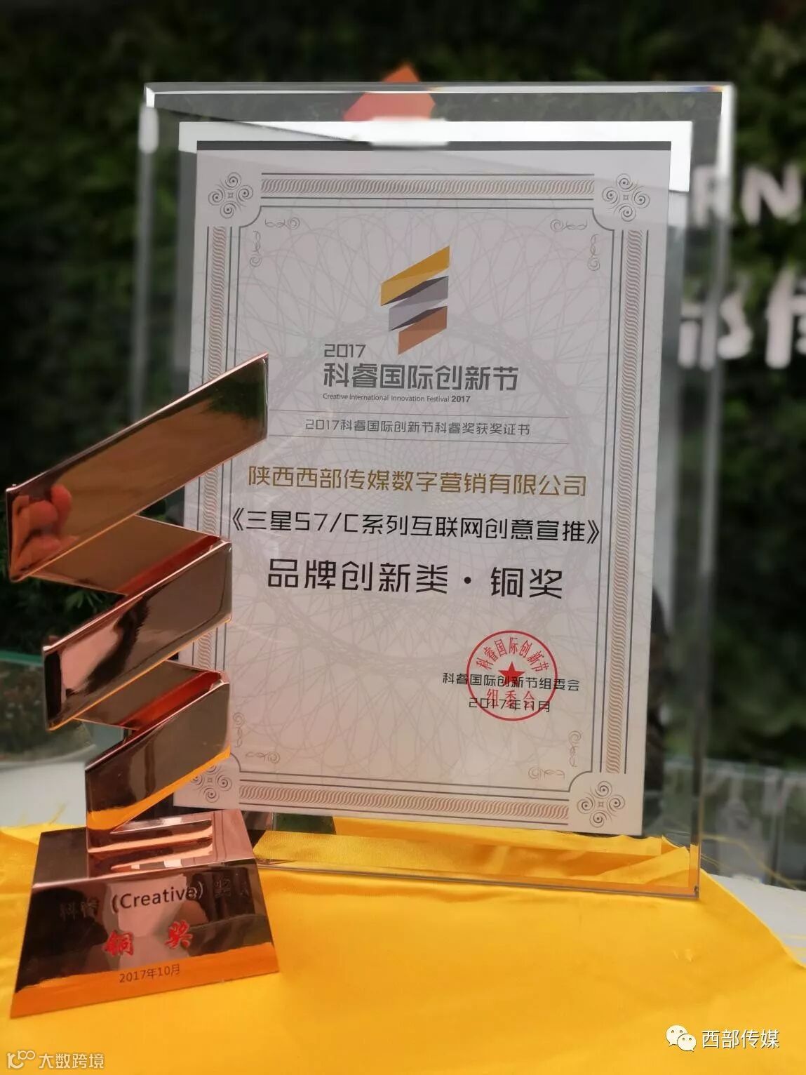 西部传媒旗下子公司陕西西部传媒数字营销公司凭借《三星S7/C系列互联网创意宣推》案例荣获“2017科睿创新奖”品牌创新类铜奖。