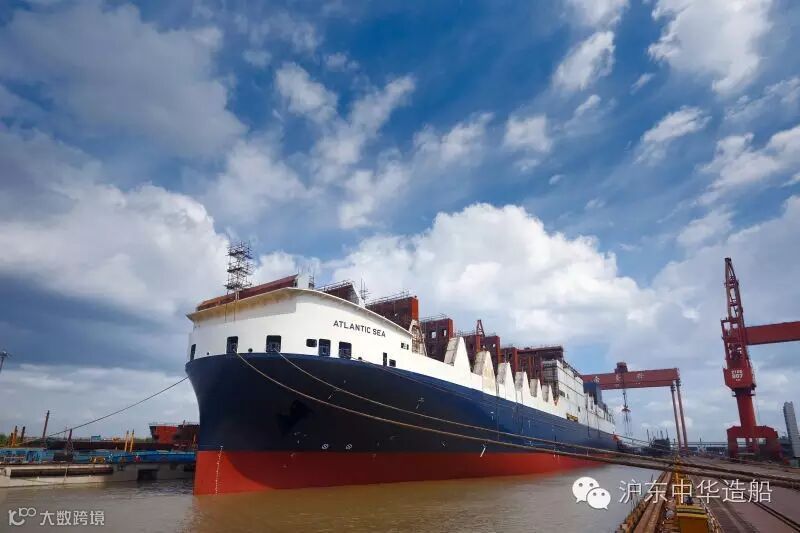 “大西洋海洋”号是沪东中华为瑞典ACL航运公司建造的一系列5艘4.5万吨集滚船的第3艘。该船是全球最大的G4型集滚船,采用革命性新设计,滚装舱位比传统G3型船大45%。这样一艘世界级的先进船舶,有着复杂的结构、严格的质量要求。建造中,长兴造船生产人员与设计方、船东、船级社持续沟通,充分协调好各方意见。该船艉部后舱区域、机舱区域、坡道区域是结构最复杂的地方,在做了有效改进后,得到了船东认可和赞扬。