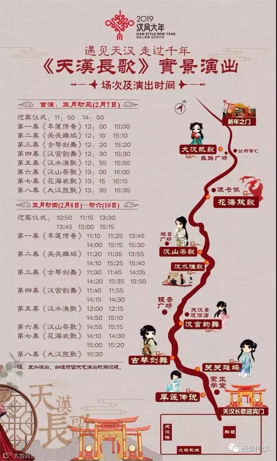 活动结束后,市民和游客还可以在天汉长街免费观看“遇见天汉·走过千年”《天汉长歌》实景演出。演出分为八幕,将贯穿天汉长街3.85公里路程,全景展现汉代著名历史故事和汉中民间传说,让游客在零距离感受演出魅力的同时,更为深入地了解汉中。