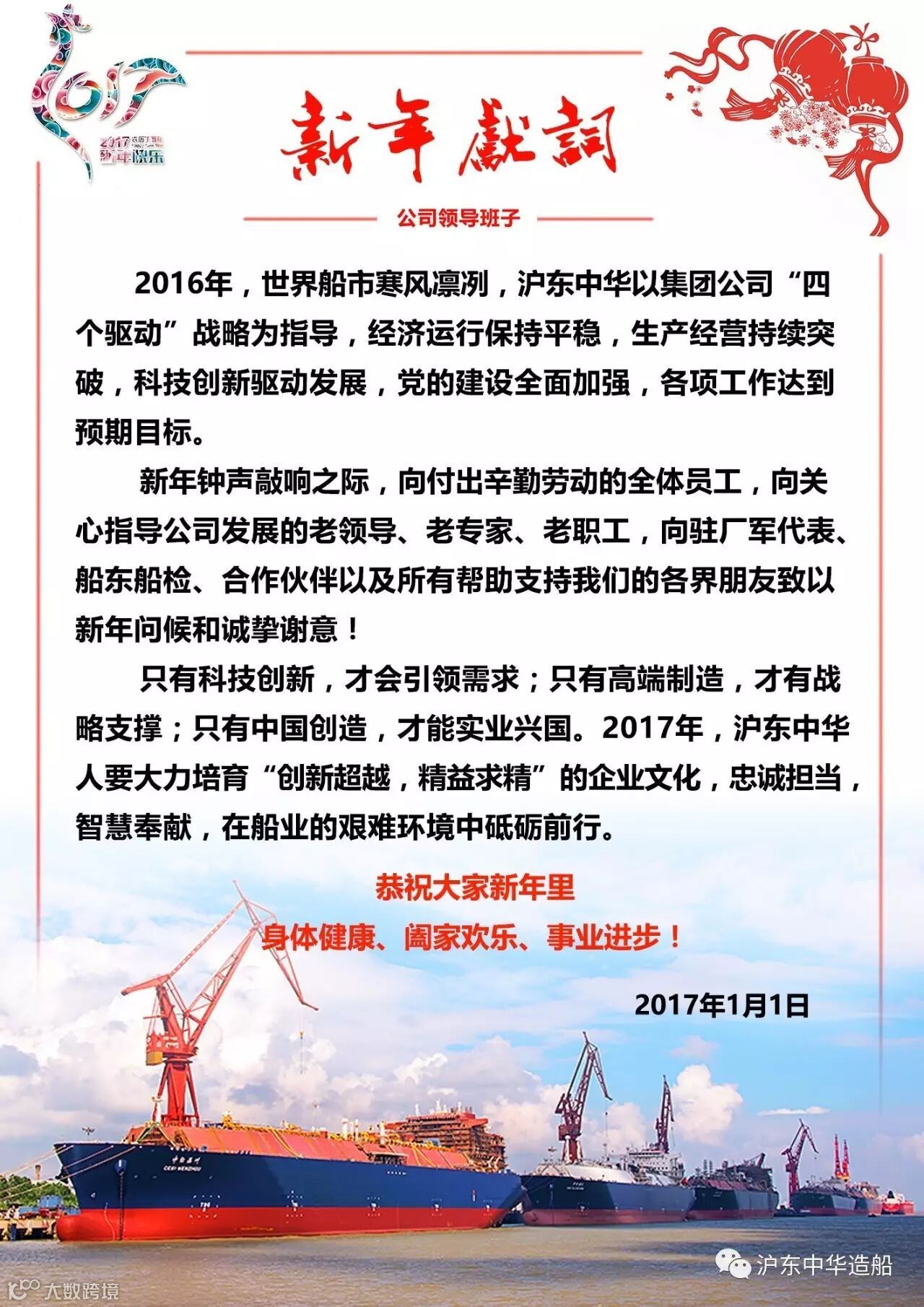 导读:2017年,沪东中华人要大力培育“创新超越,精益求精”的企业文化,忠诚担当,智慧奉献,在船业的艰难环境中砥砺前行。