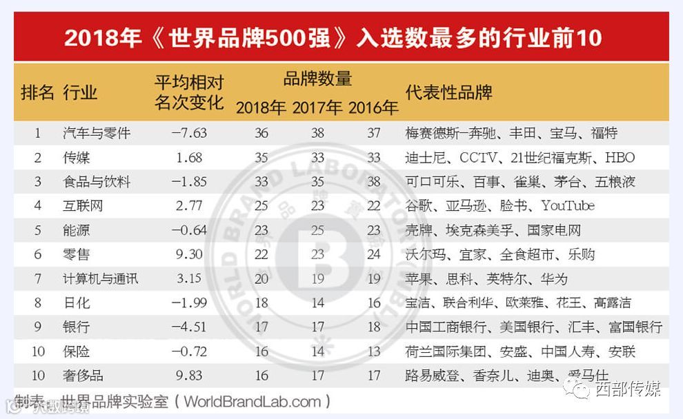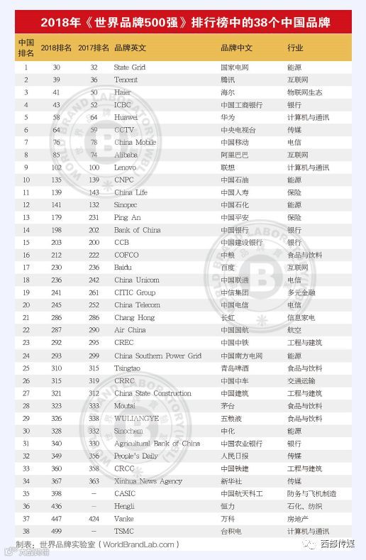 近日,世界品牌实验室(World Brand Lab)发布了最新的《2018年世界品牌500强榜单》(The World's 500 Most Influential Brands)。