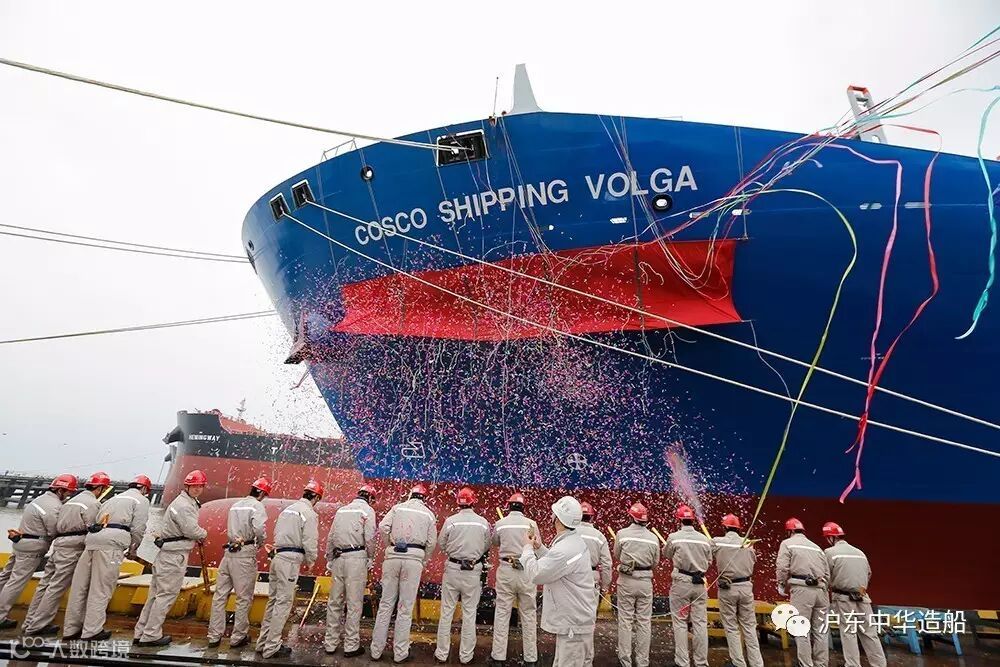 1月18日,公司为中远海运集装箱运输有限公司建造的9400箱集装箱船“中远海运伏尔加河”号命名交付。