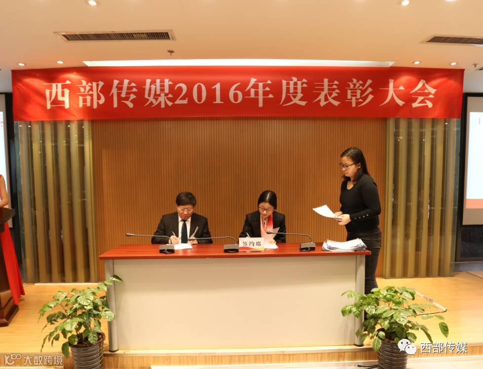 会议表彰了西部传媒集团2016年度的1个先进集体、2个突出贡献奖单位、3个创新奖单位、5名优秀管理干部、4名营销标兵、11名先进工作者,部分获表彰团队及个人进行了个人2016年成长经历分享。西部传媒董事长兼总经理王保昌,各分管领导及子公司董事长与各中心、各子公司主要负责人签订《2017年度目标责任书》、《2017年度安全生产责任书》,党支部书记仝兵凯与各职能中心分管领导、各子公司主要负责人签订《2017年度廉洁从业责任书》。