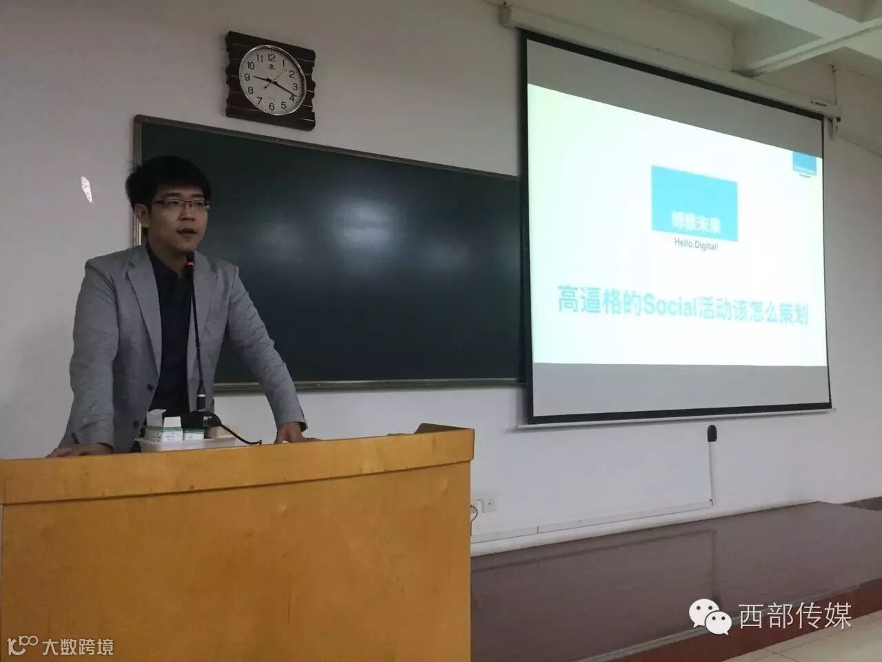 2016年9月24日,西部传媒携手博雅未来创始人王超老师走进陕西师范大学校园,开展了“数字营销大讲堂”进校园活动,为同学们带来了题为 “Social活动策划”的培训。陕师大新传学院许加彪副院长、西部传媒全体干部员工、陕师大新传学院学生、部分传媒业同行共同参加了此次活动。