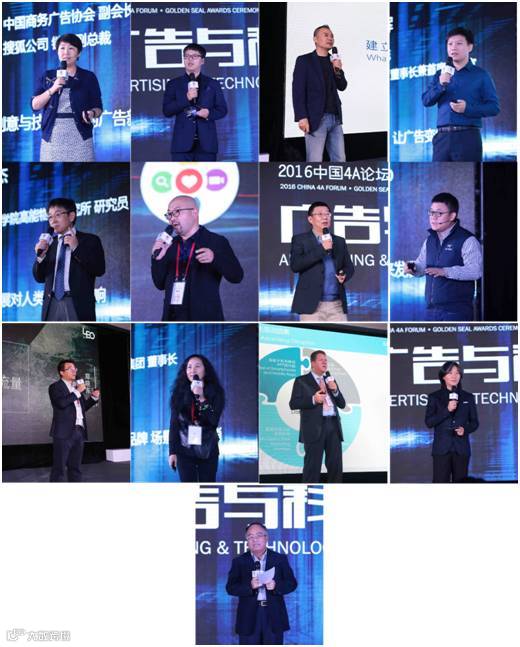 以《广告与科技》为主题的论坛活动在上午拉开帷幕。中国4A邀请了11位各行业专家精英,并针对这一主题展开探讨、各抒己见,共同见证广告行业的变革,以及中国广告行业该如何自处,让科技发展为广告人所用,直面变革时代的挑战。18日当晚,代表中国顶尖水平的广告公司和广告精英齐聚一堂,共襄盛会,庆祝4A金印奖这个中国广告人共同的节日。商务部原副部长、中国商务广告协会原会长周可仁,原国家工商总局党组书记杨培青,中国商务广告协会会长李西沙,中国商务广告协会副会长、中国4A理事长、北京广告有限公司董事长胡纪平,中国商务广告协会副会长、麦肯·光明广告有限公司董事长莫康孙,中国商务广告协会副会长、搜狐公司销售副总裁崔莉莉,中国商务广告协会副会长、中国传媒大学教授、国家广告研究院院长丁俊杰,中国商务广告协会副会长、阳狮广告中国区主席兼首席创意官郑以萍,中国商务广告协会副会长、中视金桥国际传媒集团CEO刘矜兰,中国商务广告协会副会长、思美传媒股份有限公司董事长朱明虬,中国商务广告协会副会长、中国商务广告协会教育培训委员会主席、吉广品牌创始人王启民,共同见证了中国广告行业的又一次巅峰盛典。