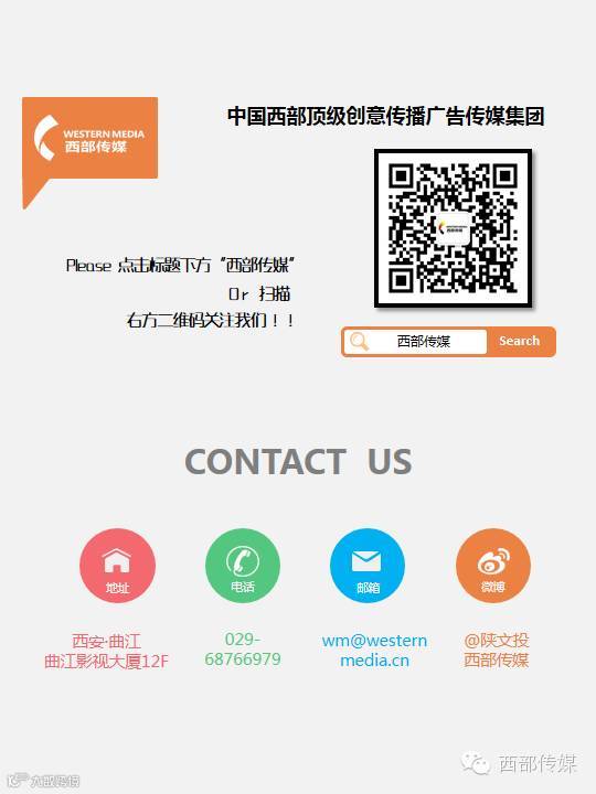 陕西西部广告传媒有限公司(简称“西部传媒”)成立于 2011年,是“陕文投集团”全资子公司、文化传媒板块核心企业。西部传媒主营业务涵盖媒体运营、品牌策划、展览展陈、新媒体营销等领域,旗下拥有新三板挂牌企业“金色股份”等参控股公司。