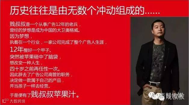导读:太多人问贱叔叔是怎么想的,放弃12年的职业从零开始做苹果汁。今天我就用ppt的形式给大家简单讲讲这个转型过程