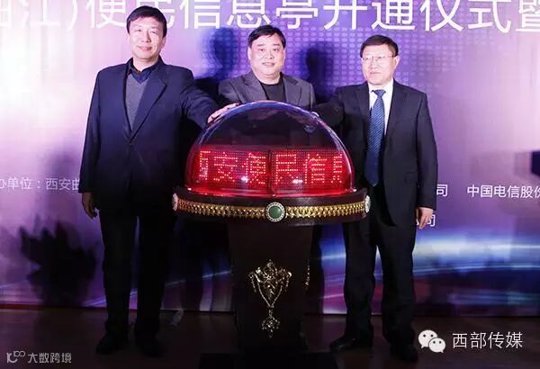 2月2日,由陕文投集团、曲江新区管委会、中国电信西安分公司联合举办的“西安便民信息亭开通仪式暨新闻发布会”在陕文投大厦举行,标志着去年以来西安投资建设的53个便民信息亭(一期)将正式为居民提供便民服务,从此广大居民在家门口就能感受到“WiFi触屏一网尽收、电气缴费一亭搞定”的便捷。陕文投集团子公司陕西西部广告传媒有限公司总经理王保昌、曲江管委会社会事业局副局长李毅、中国电信股份有限公司西安分公司副总经理王尚义出席了开通仪式并点亮启动球。