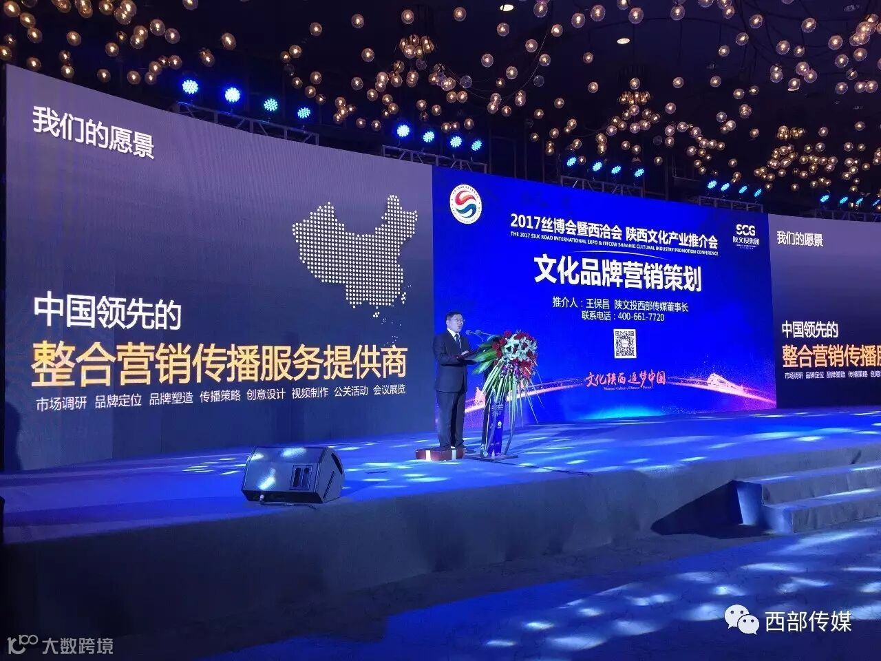 6月5日晚,陕西文化产业推介会在西安曲江威斯汀酒店圆满举办。陕西省重大文化项目建设领导小组副组长、陕西省总工会主席白阿莹,丝博会执委会副主任、陕西省委宣传部副部长钟顺虎,丝博会执委会副主任、中国国际贸易促进委员会陕西省分会会长薛华,陕西省文化厅副厅长李全虎,著名导演、陕西中影国际丝路电影城发展有限公司董事长唐季礼,意大利卡布拉斯市市长克里斯蒂亚诺·卡鲁斯,陕文投集团、西影集团党委书记、董事长王勇,陕文投集团总经理马湘云,西部电影集团总经理赵文涛等400余位嘉宾出席此次活动。西部传媒·陕文投品牌营销中心作为此次推介会的执行单位,负责整体活动的策划与执行。