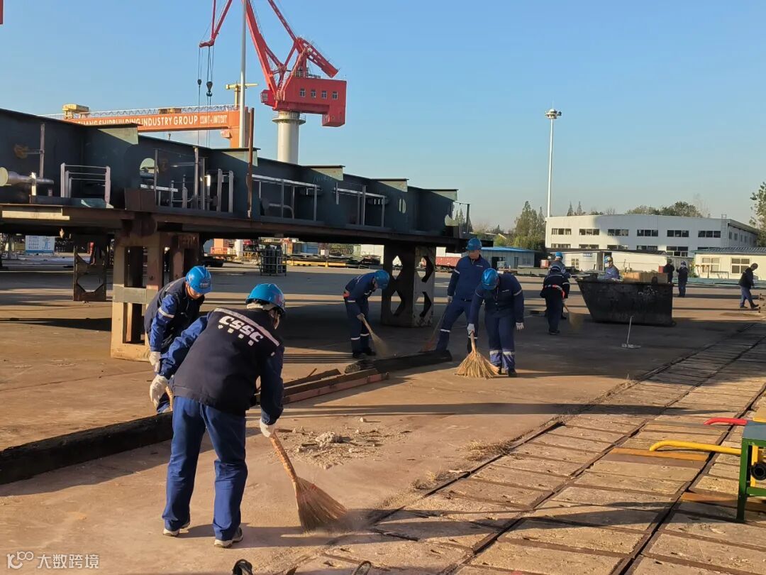 活动中,各组紧密配合,相互联动,形成“清理-收集-转运”闭环。两个半小时的集中攻坚后,200T区域焕然一新:轨道两侧无杂物、通道畅通无阻,空间利用率大幅提升,为后续分段制造和舾装任务创造了良好条件。