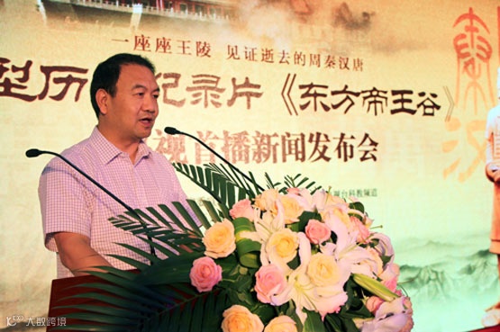 6月18日上午,由中共陕西省委宣传部、中央电视台科教频道、陕文投集团联合投资摄制的大型历史纪录片《东方帝王谷》(前八集)新闻发布会在曲江国际会议中心举行。该片以“寻找民族复兴之源”为主题,以陕西境内帝王陵、历史现场、文物为基本资源,探索一座座陵墓墓主的命运沉浮,一位位墓主背后的王朝兴衰,一个个王朝所演绎的文明成长。通过寻找烙在山河大地上的周秦历史,生动展现中华文明的伟大历程以及历史重要人物,是一部为民族复兴提供历史依据、内容资源、精神动力的史诗纪录片。该片于6月23日至30日每晚9点央视科教频道黄金档播出,届时将为全国观众奉上一场高质量的中国历史文化盛宴