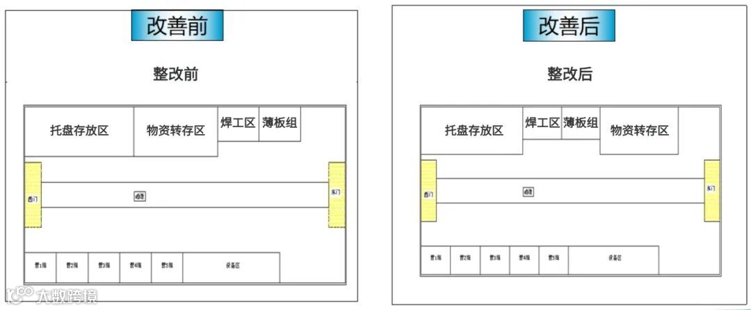 薄板组作业区域前移40米,减少薄板小组前往设备加工区域的直线距离,使下料、卷制、折边等工序更快捷。