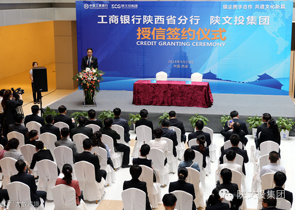 省委宣传部副部长龚晓燕讲话,工行陕西省分行行长尚军、陕文投集团董事长王勇分别致辞。省金融办副主任李忠民、省文化厅副巡视员李全虎、省财政厅文资办副主任李健,工行陕西省分行副行长蒋伟等出席签约仪式。工行陕西省分行副行长王军锋、陕文投集团副总经理李振林代表双方签约。