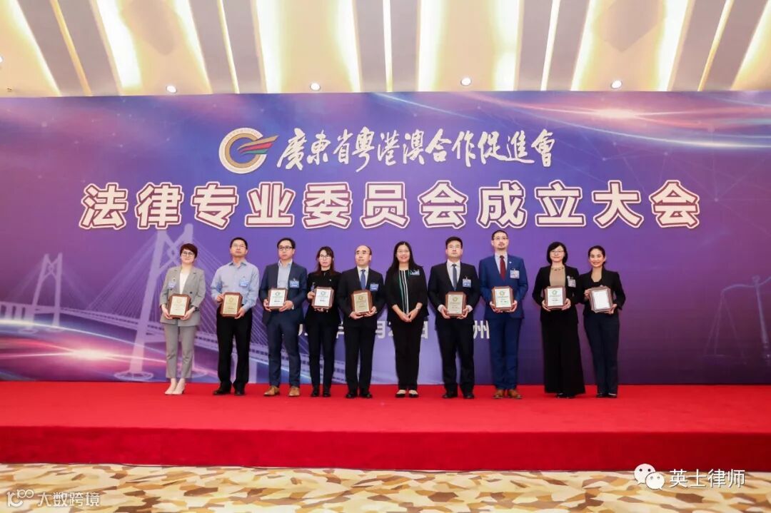 大会这次邀请了超过了100名嘉宾参与,并邀请到香港、澳门特区的政府官员和广东省领导致辞。大会首先让法律专业委员会筹备组的负责人作出“法律专业委员会筹备情况报告”,并宣读和选举产生委员会组织架构名单,及审议相关的工作规则。英士香港办公室合伙人吕志豪及卢致维律师当选委员会的副秘书长,并获颁发牌匾及证书。