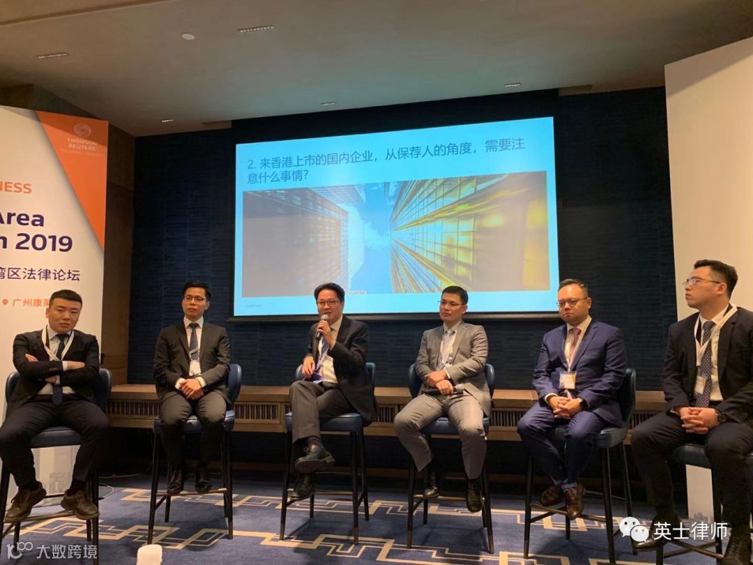 英士全球合伙人及中国资本市场主管吕志豪 (Eric Lui) 律师获邀在论坛讨论环节担任主讲嘉宾及主持人,围绕赴港上市的话题进行了生动的讨论。企业赴港上市,促进内地与港澳合作的深化,进一步提升了粤港澳大湾区在国家经济发展和对外开放中的支撑引领作用。邀请参会和讨论的嘉宾包括国泰君安融资有限公司董事总经理兼企业融资部副总经理罗广信及董事刘玉麒、山证国际高级副总裁及研究部副主管郭彪和董事总经理及零售业务部主管王智雄、宏智融资有限公司董事总经理简子欣和伍柏廉、国卫会计师事务所有限公司副董事总经理韩冠辉和董事石磊以及泓亮咨询及评估有限公司董事总经理张翘楚。以上讨论环节的嘉宾都是在香港资本市场经验丰富,处理过无数的上市项目的专家。