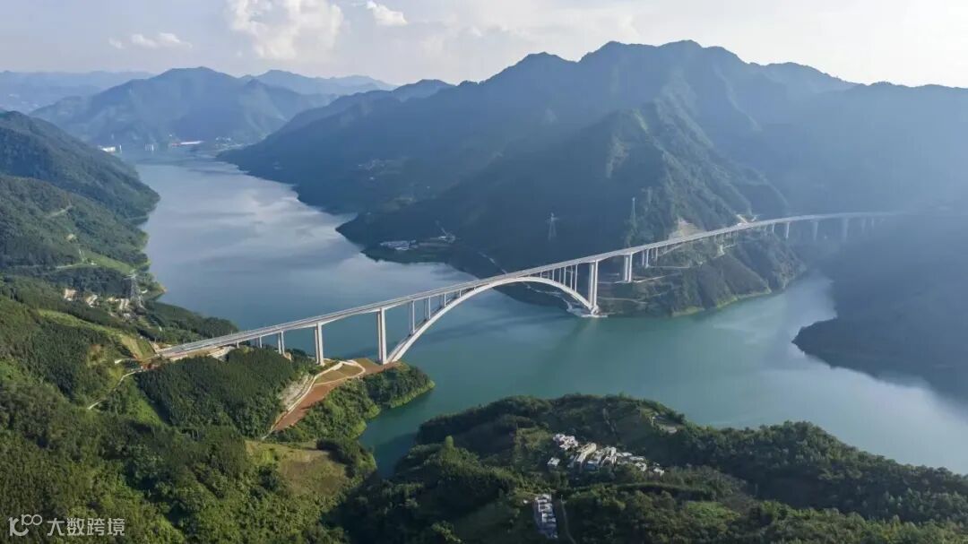 天峨龙滩特大桥横跨广西河池市天峨县龙滩水库,主桥为跨径600米的上承式劲性骨架混凝土拱桥,是目前世界最大跨度劲性骨架混凝土拱桥,引领世界拱桥正式迈入600米级时代,实现世界拱桥发展史上里程碑式的跨越。