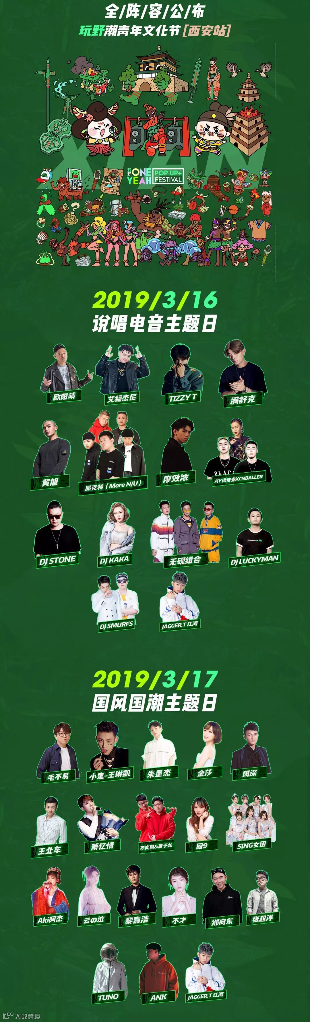 因“乐”而动,为爱而生!由广州壹野传媒、陕西西部传媒数字营销有限公司联合主办的“2019玩野潮青年文化节·西安站”将于3月16-17日登陆古城西安与大家见面,届时,欧阳靖、派克特(More N/U)、毛不易、周深等众星齐聚,为大家带来一场“说唱电音×国风国潮”的多元文化视听盛宴!