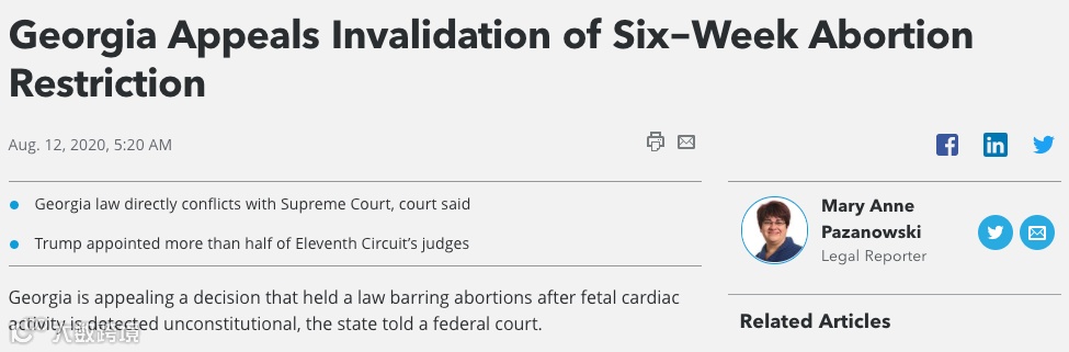 不仅仅是德州,2019年,阿拉巴马州(Alabama),乔治亚州(Georgia),肯塔基州(Kentucky),路易安那州(Louisiana),密西西比州(Mississippi),密苏里州(Missouri),俄亥俄州(Ohio)都通过了类似的立法,或者禁止6周后坠胎,或者禁止8周后坠胎。