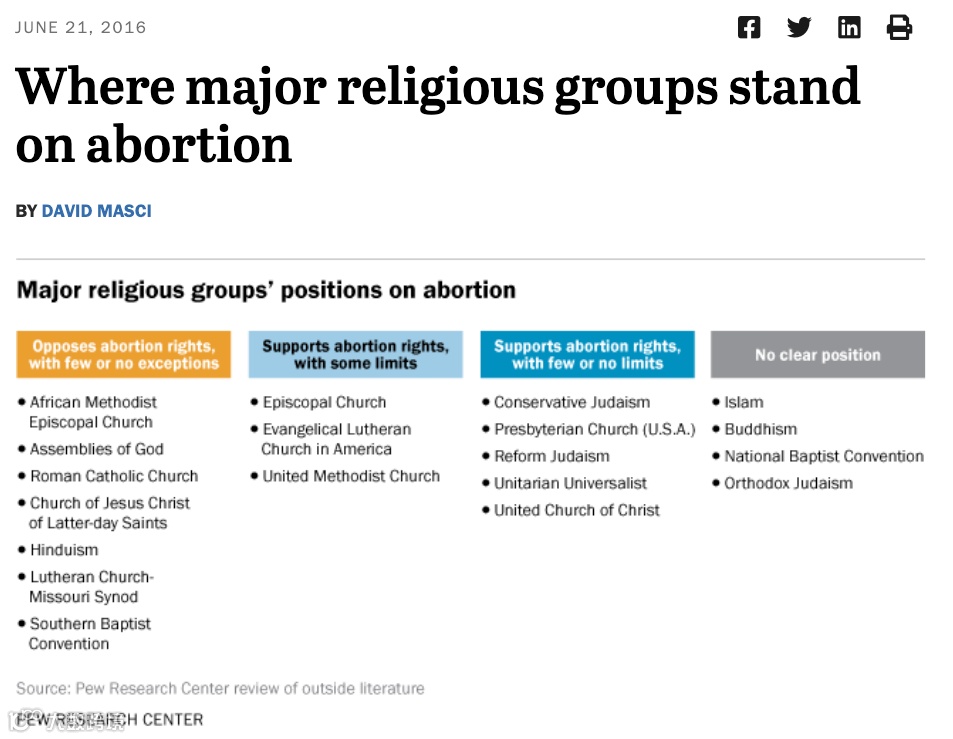 主要宗教团体在堕胎问题上的立场