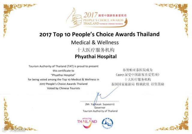 帕亚泰医院成为《2017深受中国游客喜爱奖项》十大医疗服务机构