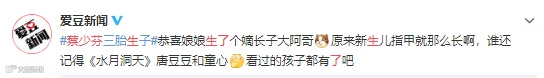 但大家在恭喜之余,也都强调蔡少芬生的是儿子。