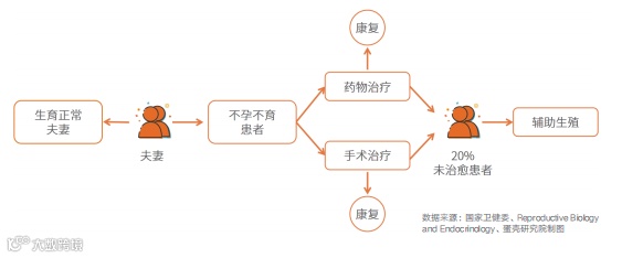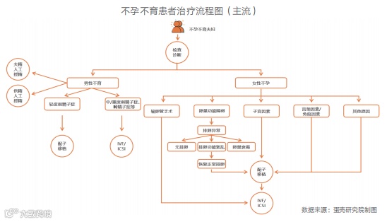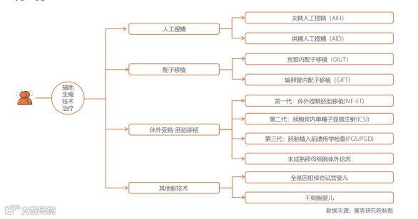 同时,相对于其他两类治疗途径,辅助生殖技木治疗的整体妊娠率在40%~60%左右,远高于其他的治疗手段。