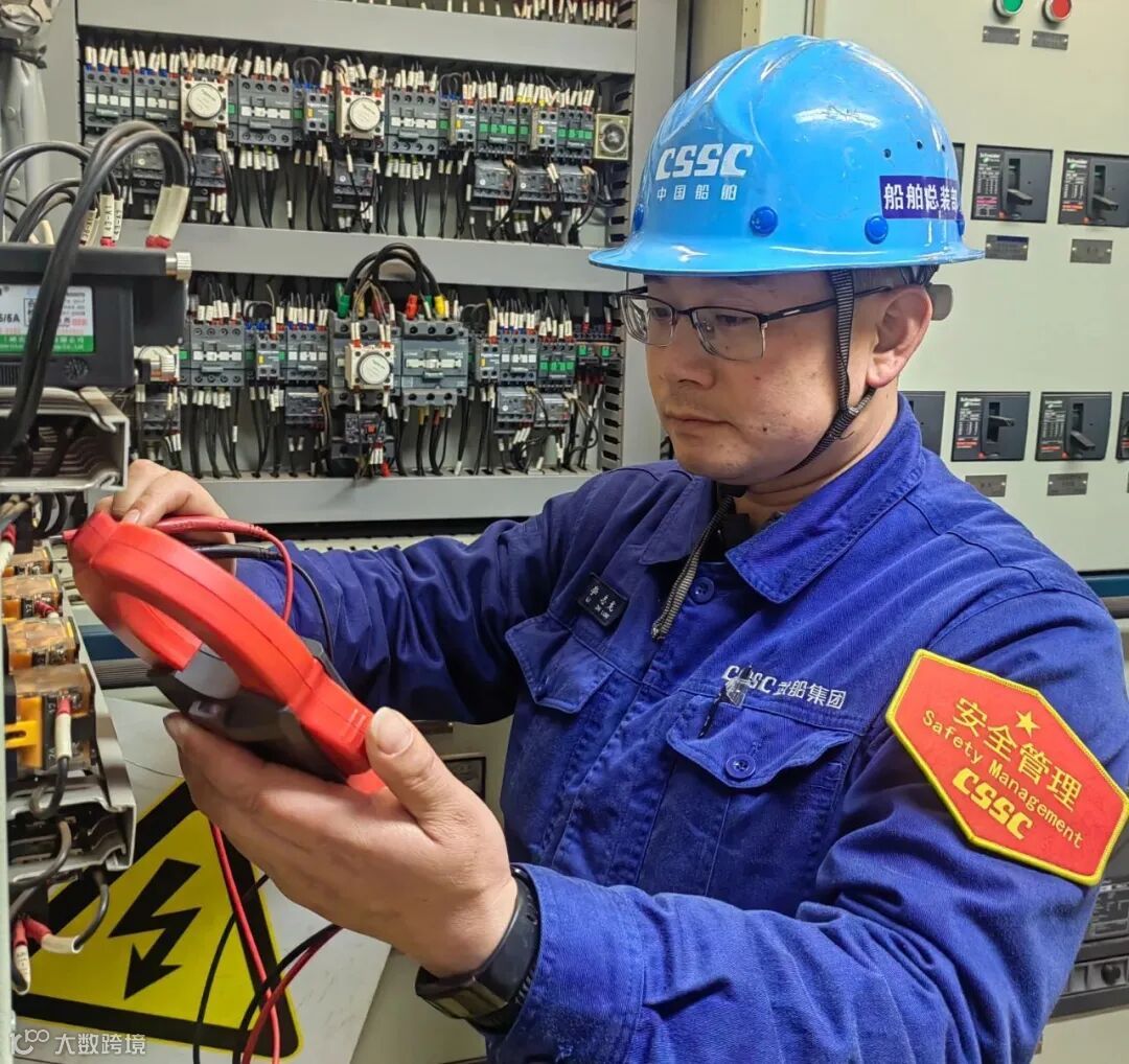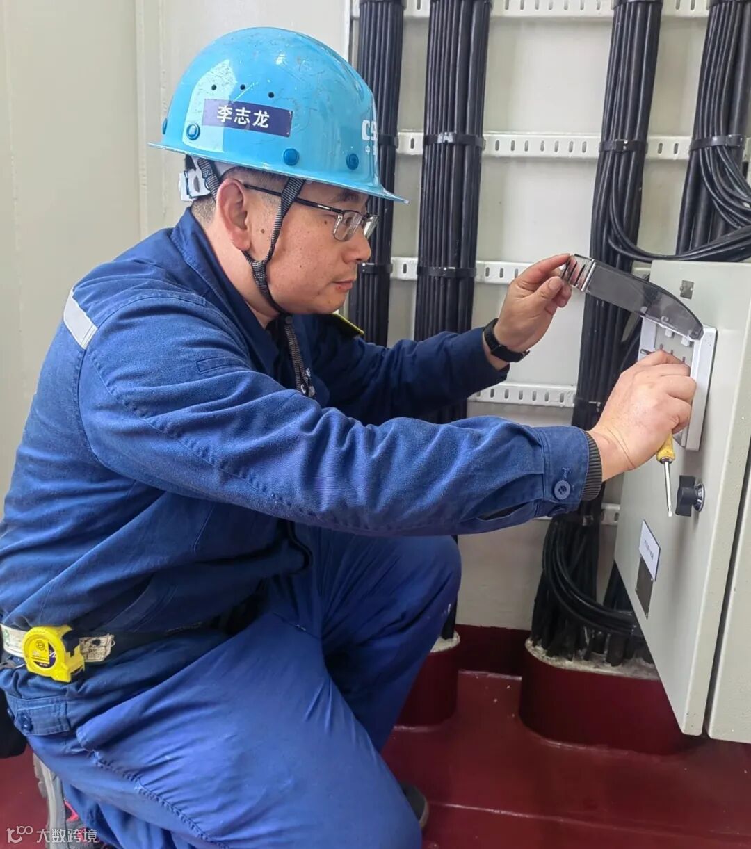 他是总装部船舶电工李志龙,他正带领电工二组在船台开展“古琴号”的发电机动车试验,这也是公司建造的民船产品首次在船台区域完成发电机动车节点。