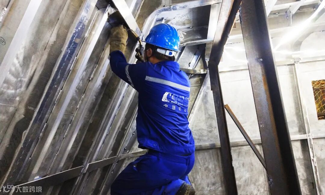 ▲船艇公司船艇制造部装配工陈彬正在进行装配完工报检前的自互检结构清理
