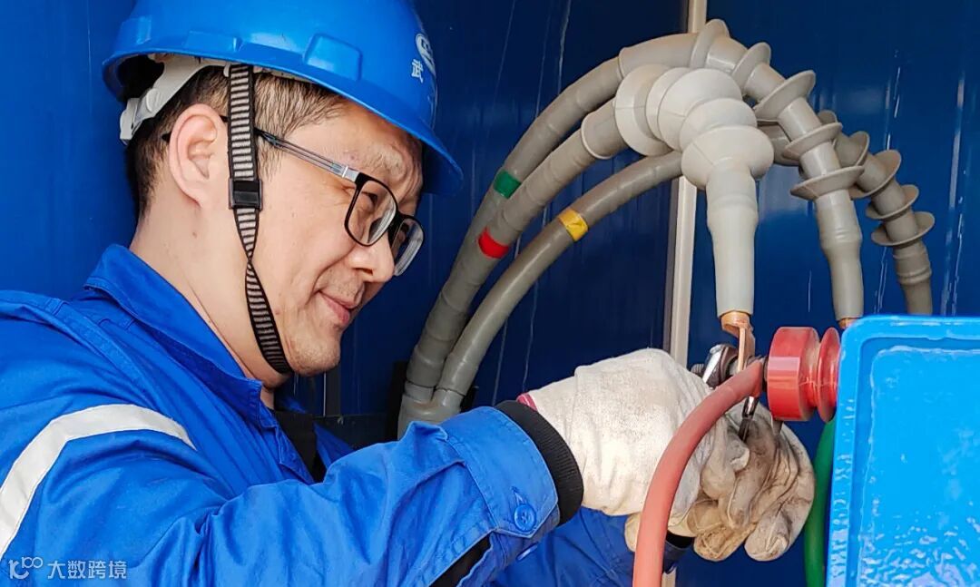 ▲电站运维工刘丹对变压器电气连接部位进行紧固