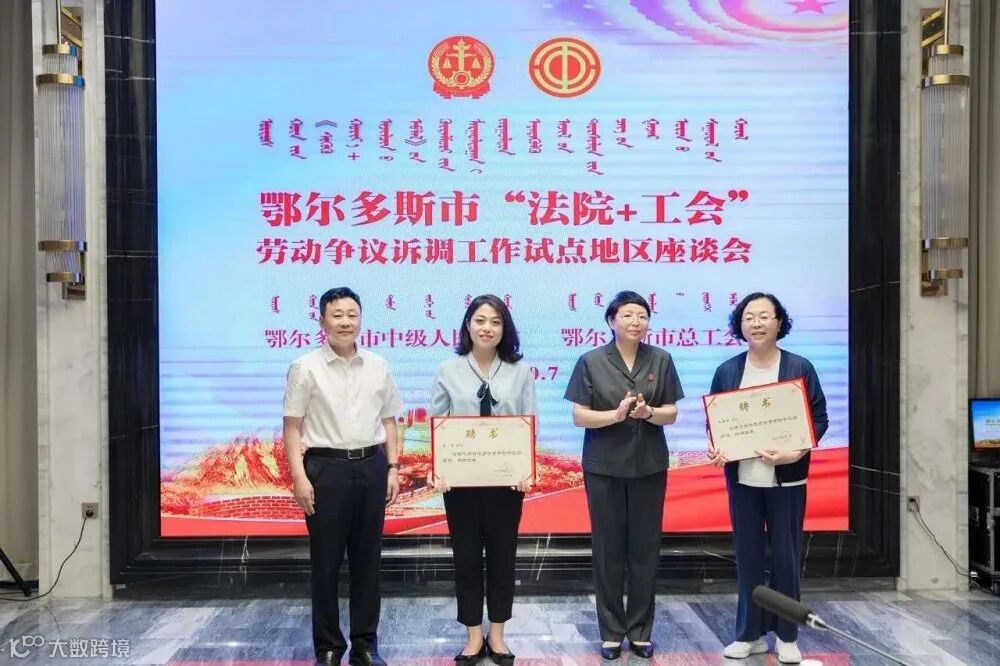 7月17日,鄂尔多斯市“法院+工会”劳动争议诉调工作试点地区座谈会在康巴什召开。会议旨在全面贯彻党的十九大和十九大二中、三中、四中全会精神,积极落实完善社会矛盾预防调处化解综合机制新要求,进一步推进全区法院劳动争议多元化解机制建设,及时有效化解劳动争议案件,构建和谐劳动关系。市中级人民法院副院长李梅荣,市总工会副主席吴明海出席会议并讲话。我所李岢、张伟律师应邀参加会议,并被聘为“鄂尔多斯市劳动争议调解员”。
