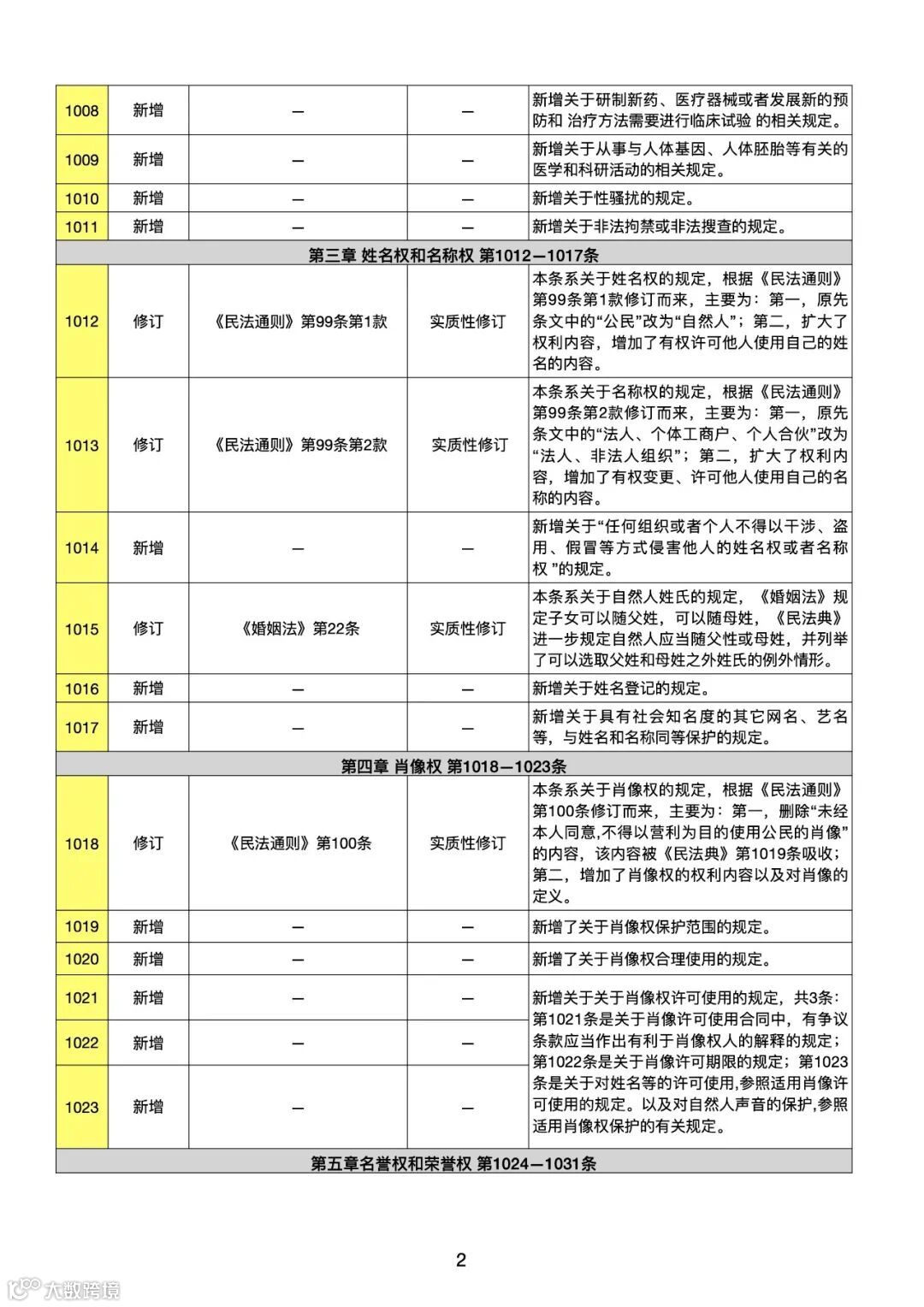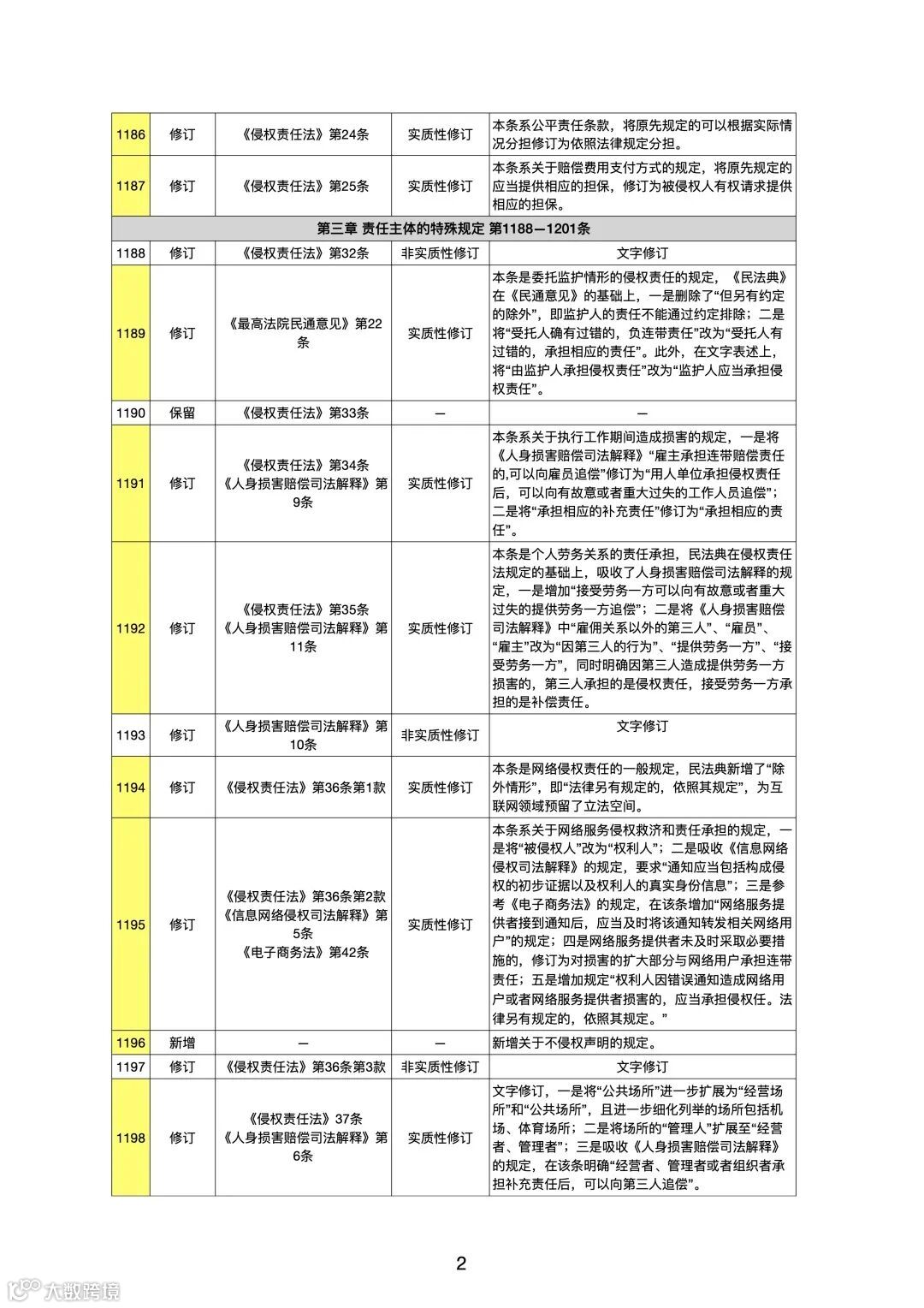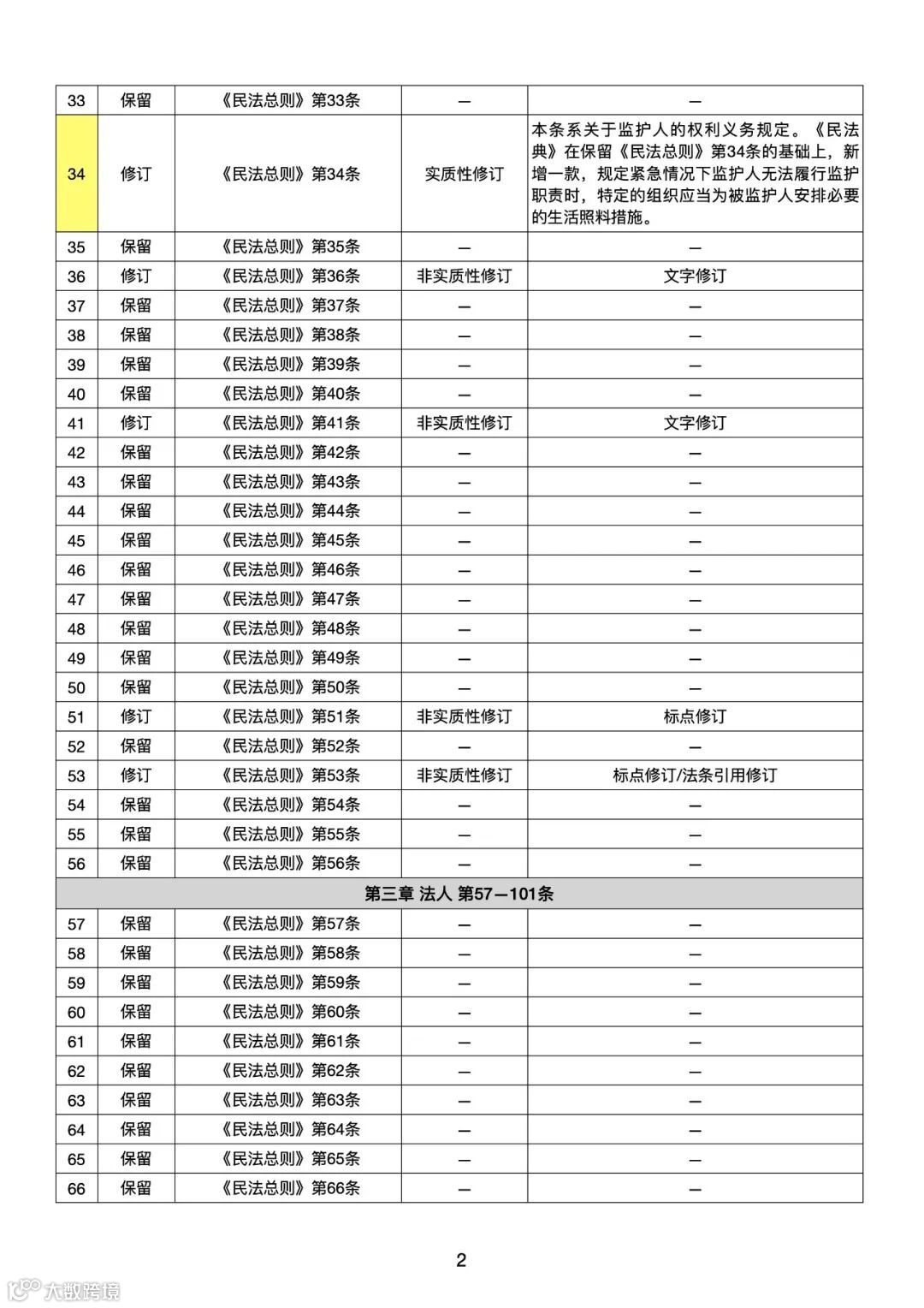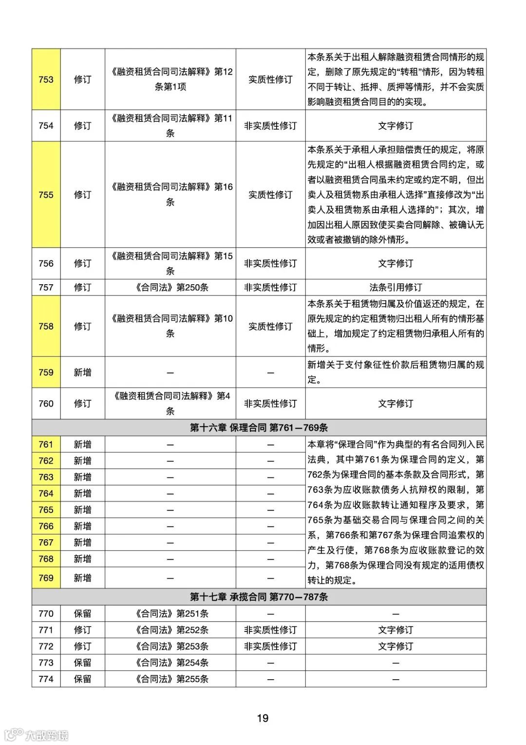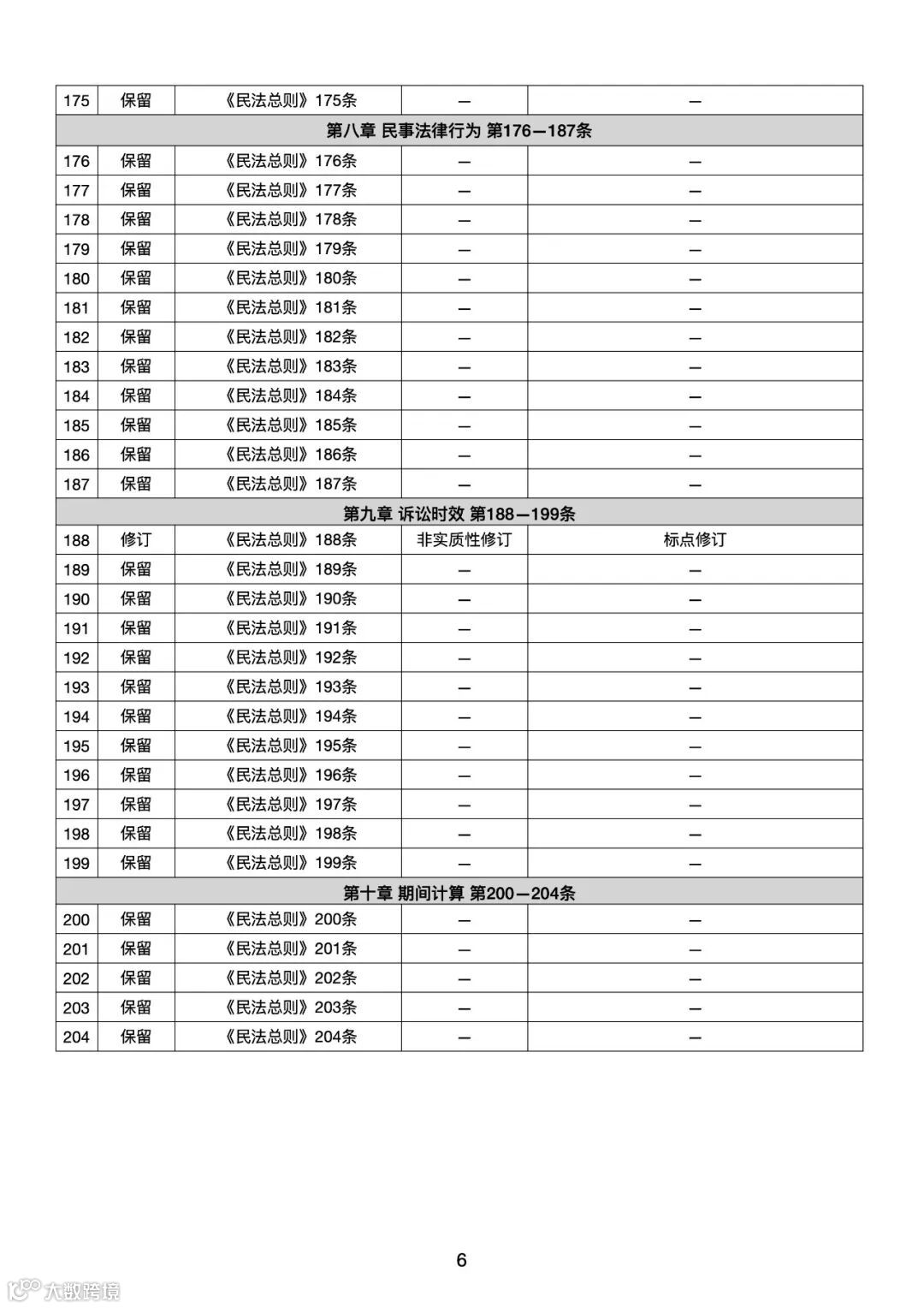 总则编共204条,0条新增、2条实质性修订、19条非实质性修订、183条保留;
