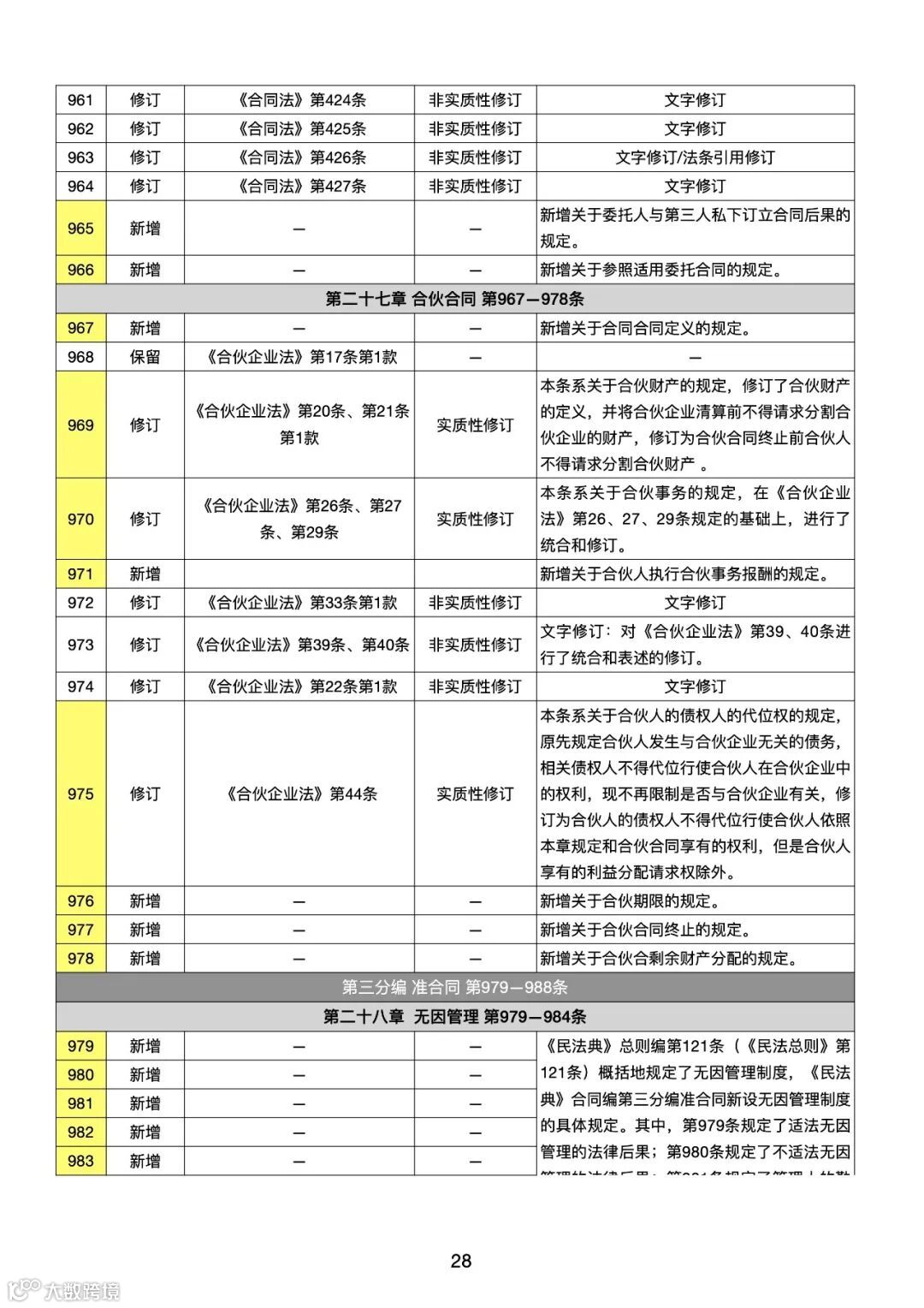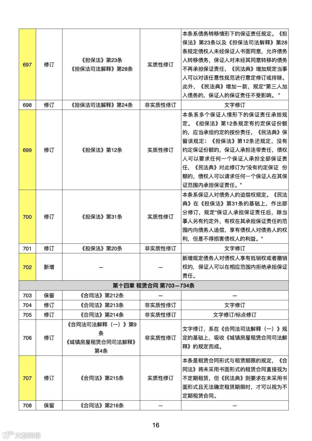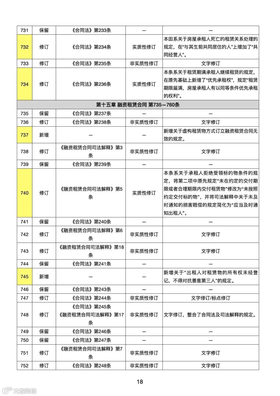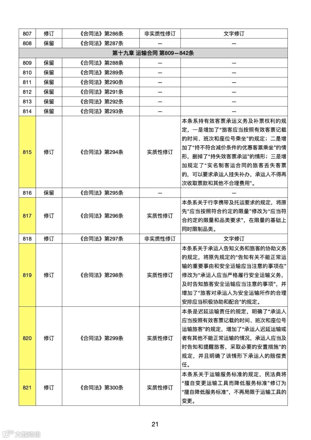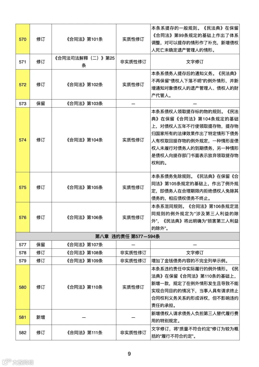总则编共204条,0条新增、2条实质性修订、19条非实质性修订、183条保留;
