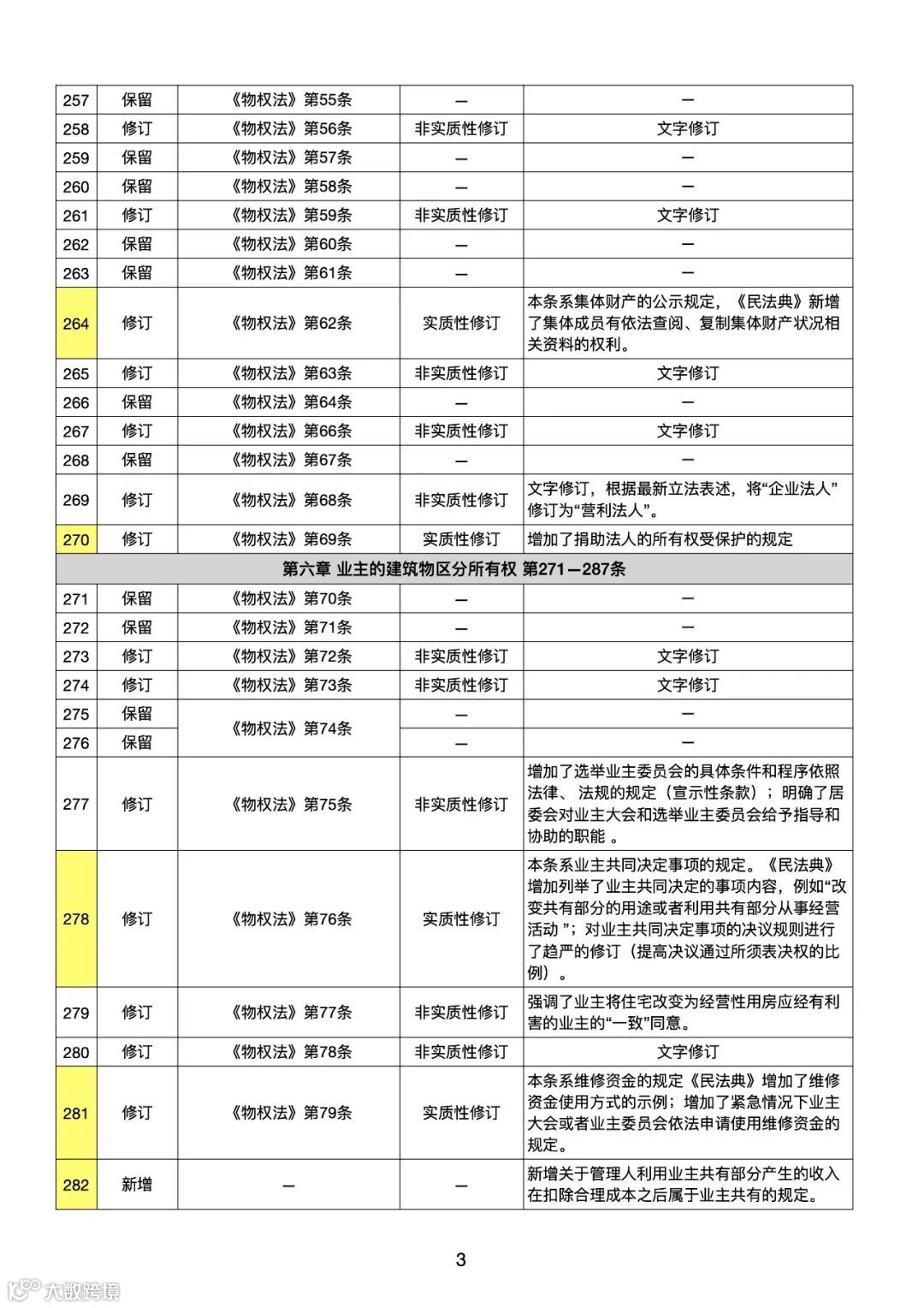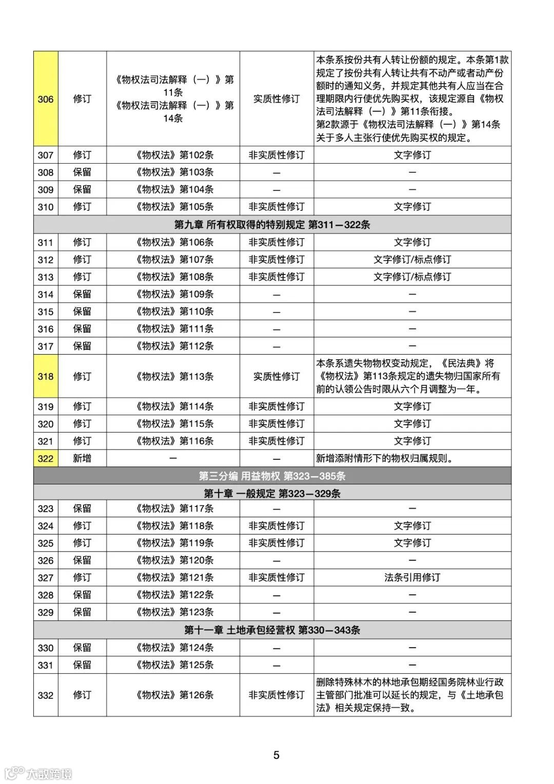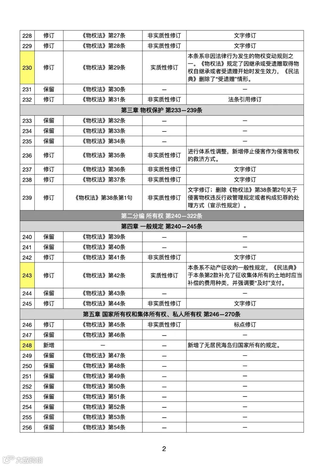 物权编共258条,12条新增、32条实质性修订、99条非实质性修订、115条保留;