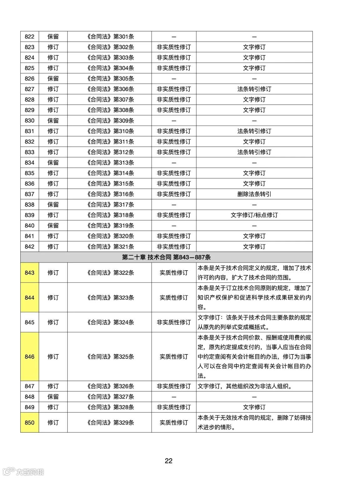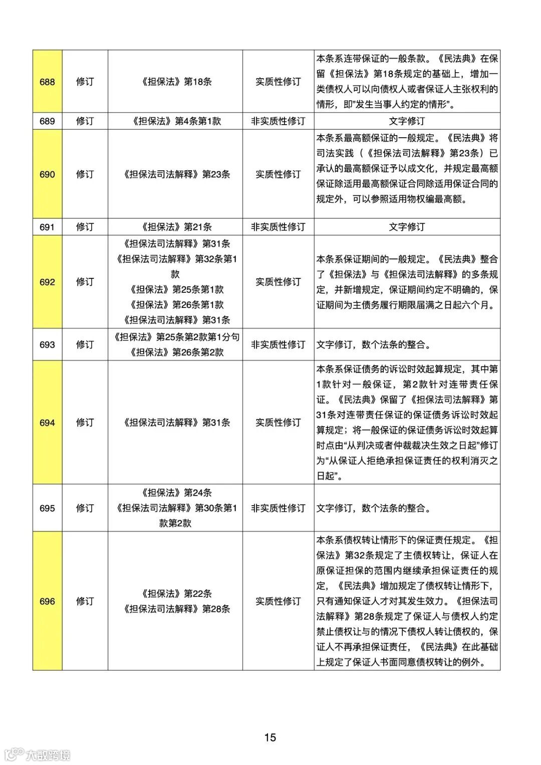 其次,有336个法条系根据《合同法》《担保法》《合伙企业法》等部门法以及《买卖合同司法解释》等相关司法解释的规定修订而来,其中224个法条为非实质性修订,例如标点符号、文字表述、法条引用的修订或调整;112个法条系实质性修订,主要集中于通则编、保证合同、运输合同、技术合同以及合伙合同等章节;