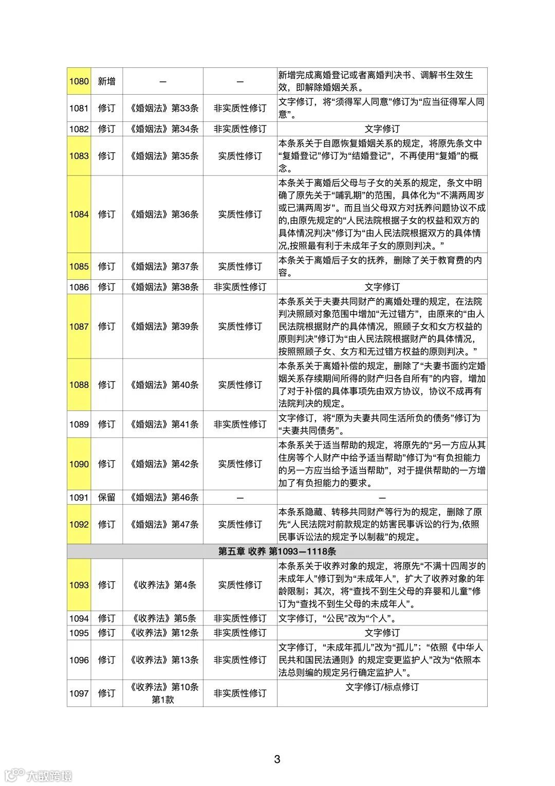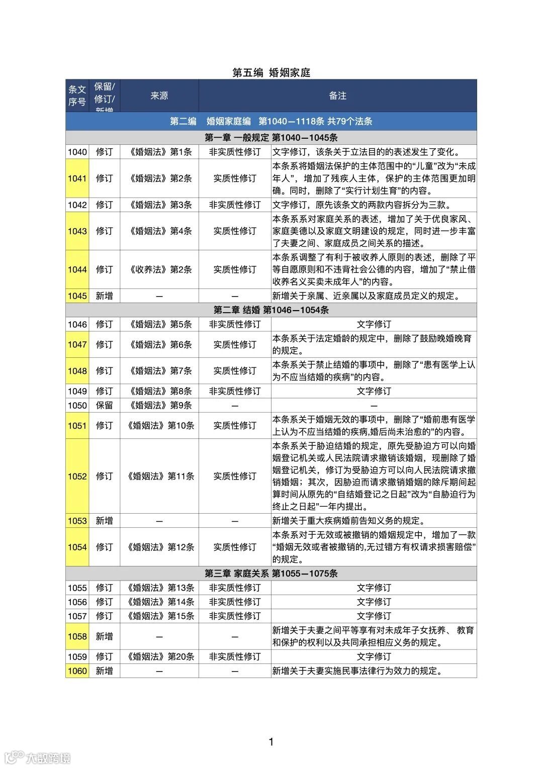 婚姻家庭编共79条,8条新增、32条实质性修订、30条非实质性修订、9条保留;