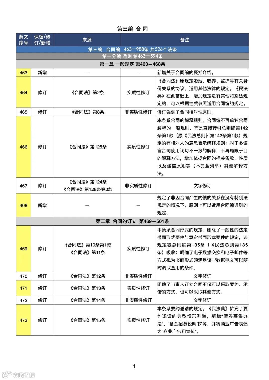 合同编共526条,70条新增、112条实质性修订、224条非实质性修订、120条保留;