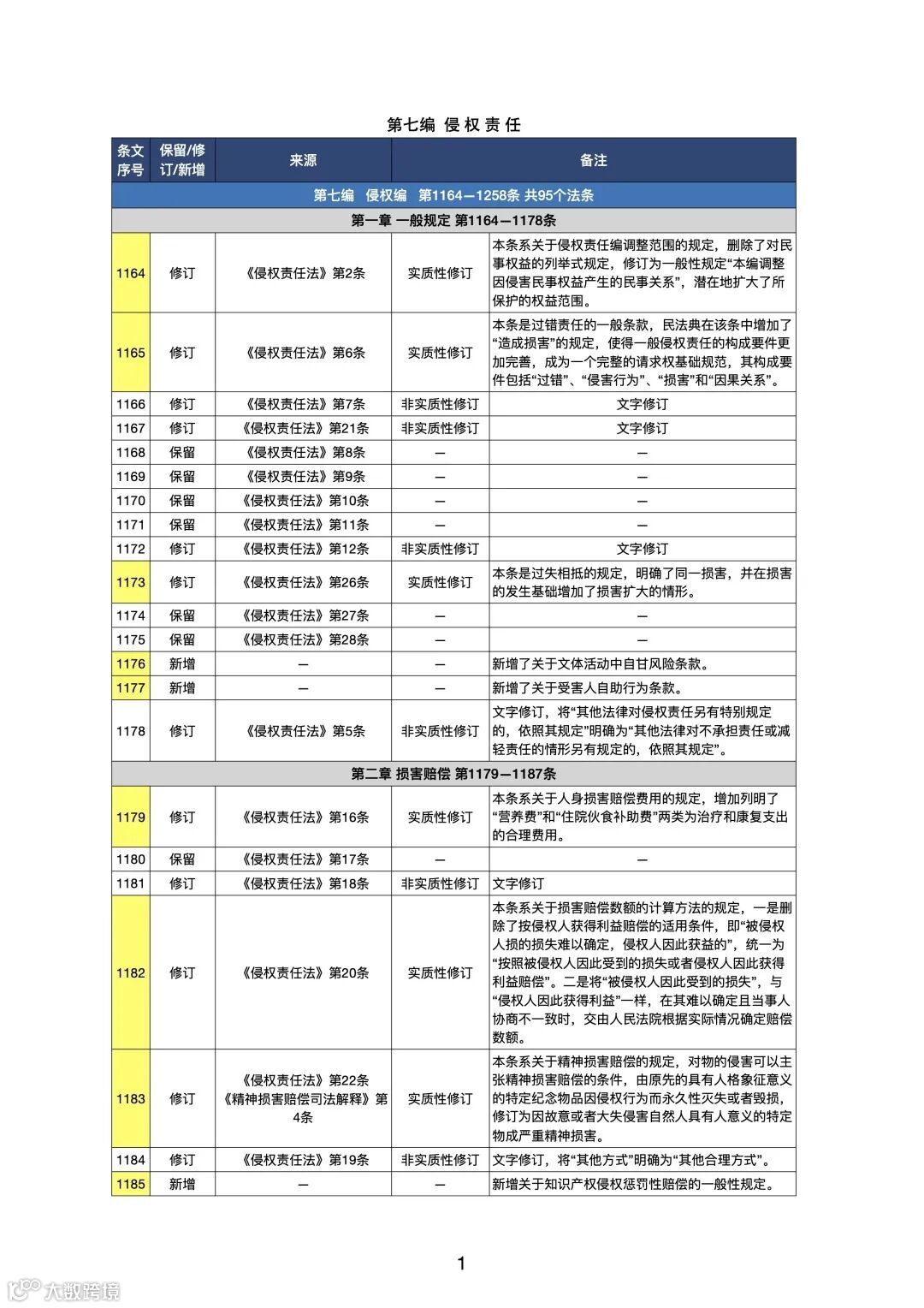 侵权责任编共95条,8条新增、44条实质性修订、23条非实质性修订、20条保留;
