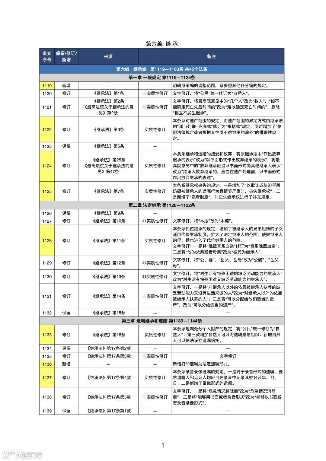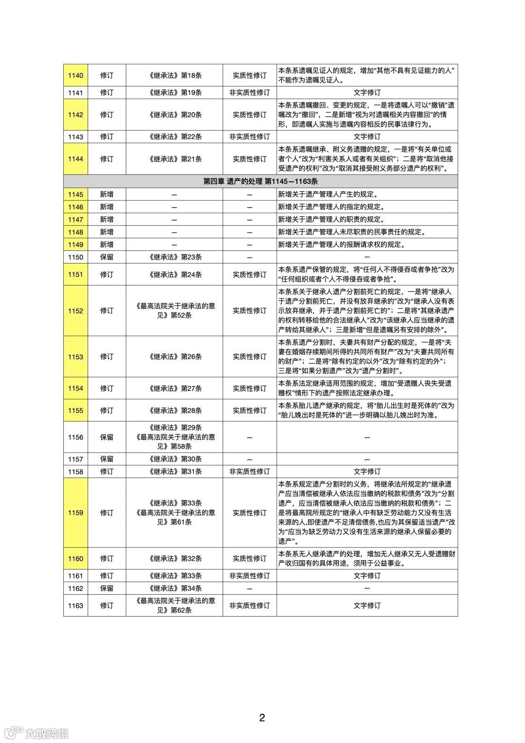 继承编共45条,7条新增、16条实质性修订、13条非实质性修订、9条保留;